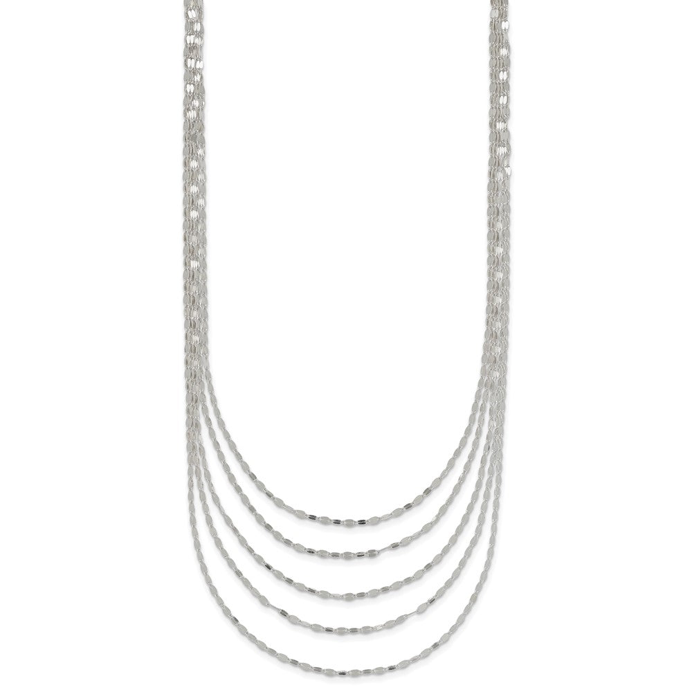 Sterling Silver 5 Strand Fancy Flat Link Necklace