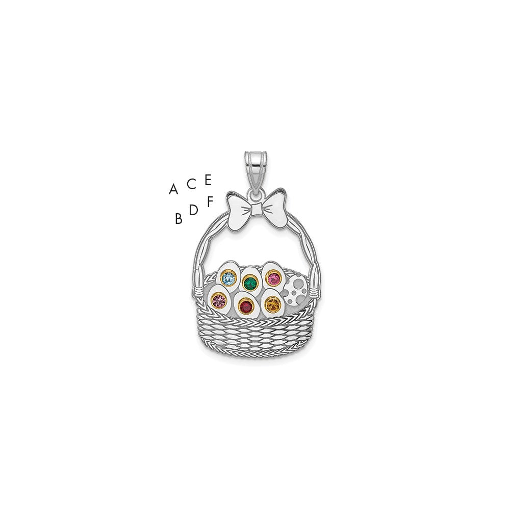 Sterling Silver 6 Birthstone with 14ky Bezel Easter Basket Pendant