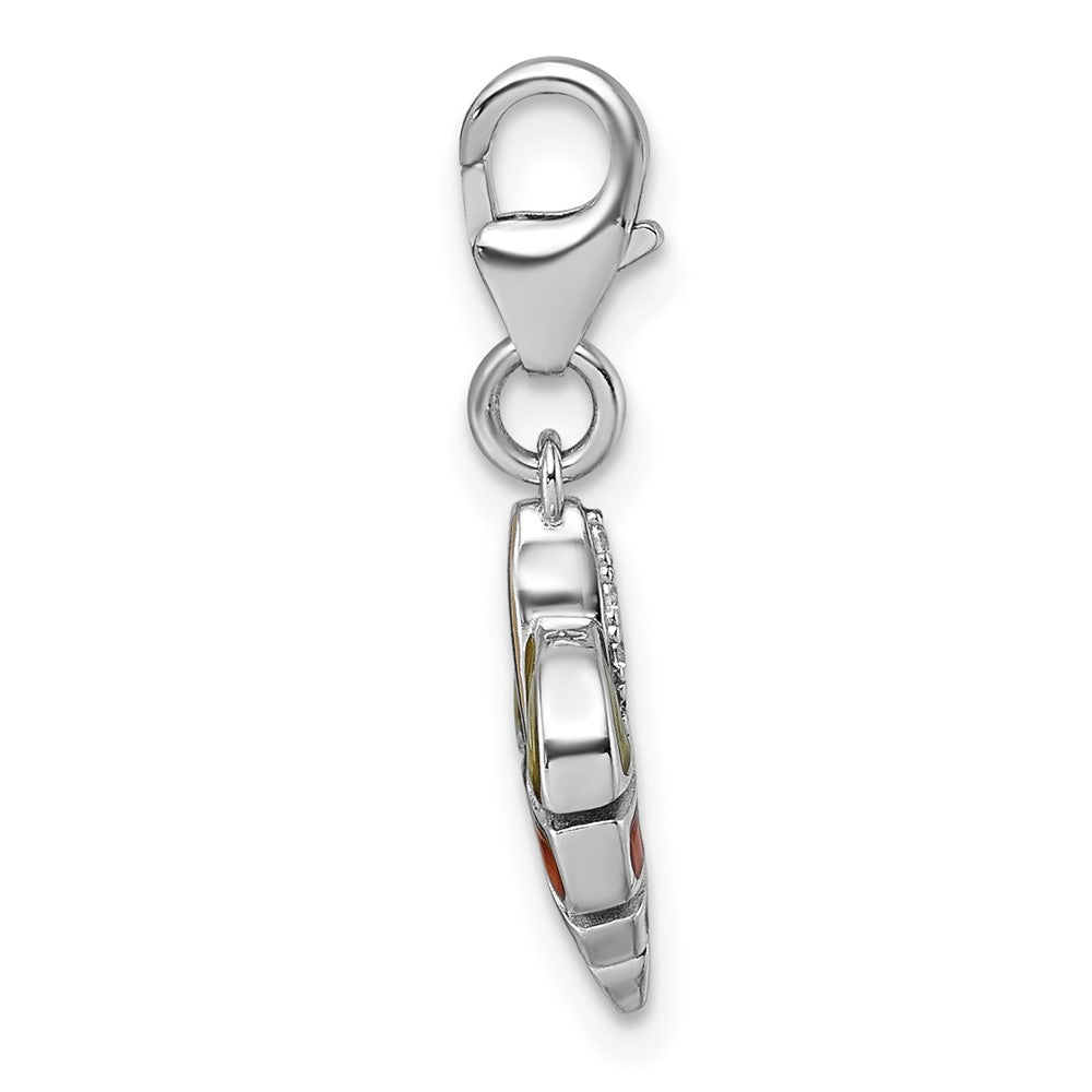 Sterling Silver Amore La Vita Rhodium-plated 3D Green and Orange Enameled with CZ Leaf Charm with Lobster Clasp