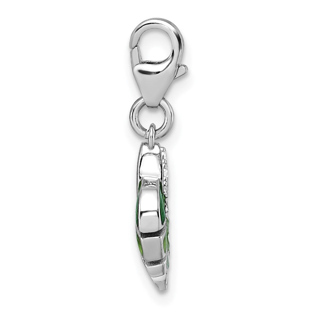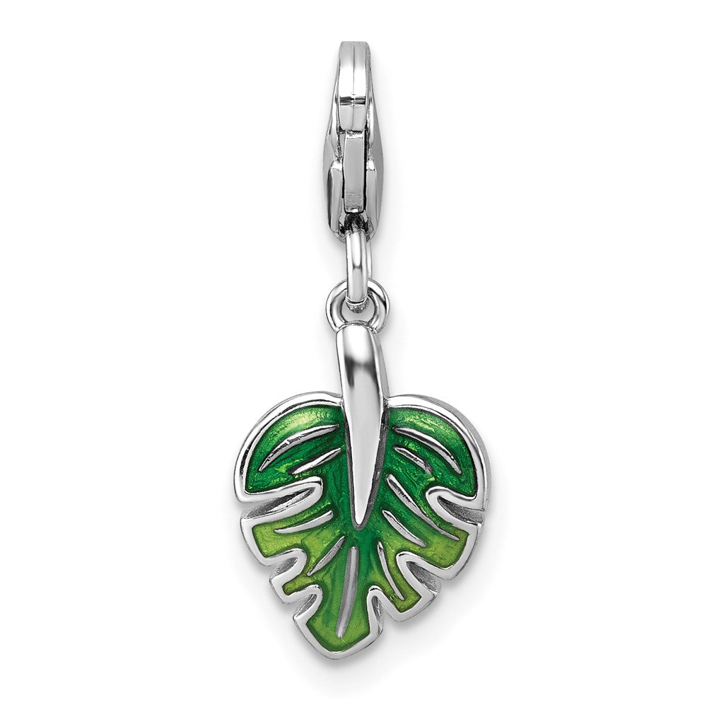 Sterling Silver Amore La Vita Rhodium-plated 3D Green Enameled with CZ Leaf Charm with Lobster Clasp