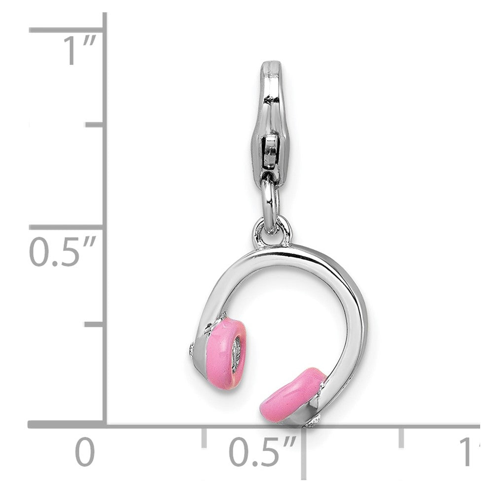 Sterling Silver Amore La Vita Rhodium-plated 3D Pink Enamel and Swarovski Crystal Headphones Charm with Lobster Clasp