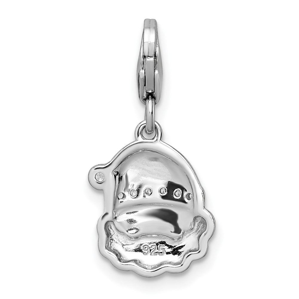 Sterling Silver Amore La Vita Rhodium-plated Red and White Glitter Enameled with CZ Santa Charm with Lobster Clasp