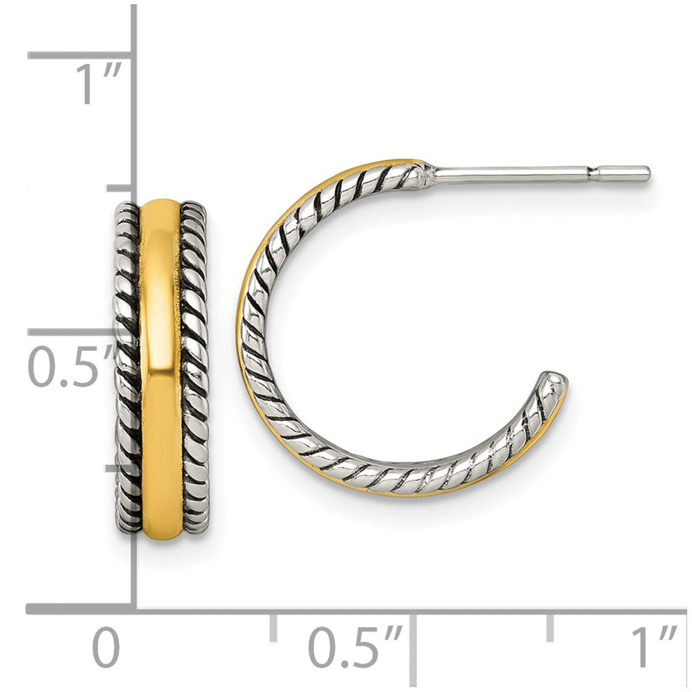 Sterling Silver and Gold-tone Antiqued Textured Post C-Hoop Earrings