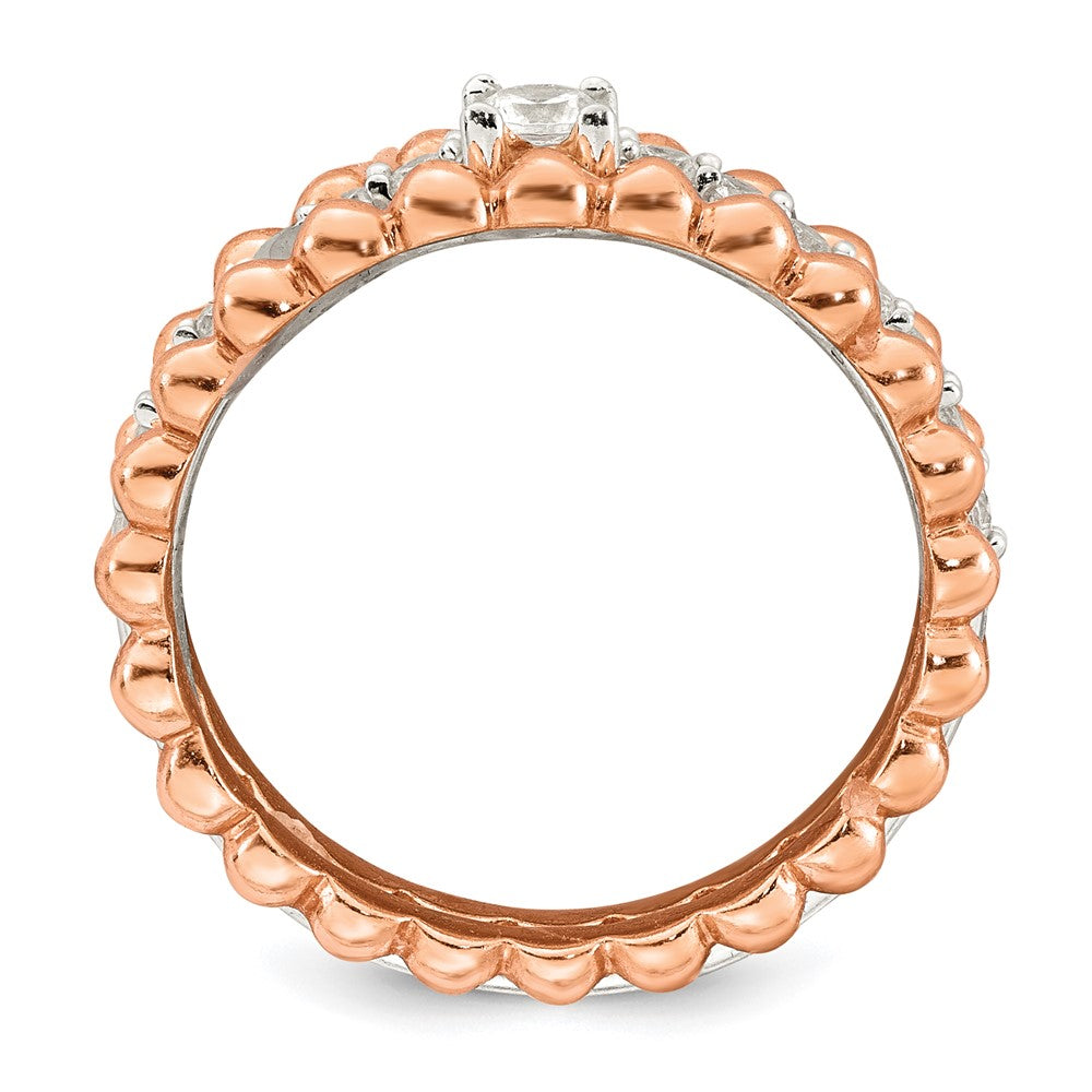 Sterling Silver and Rose-tone Polished Round White CZ Ring with 2 Beaded Bands Size 6 Three Ring Set