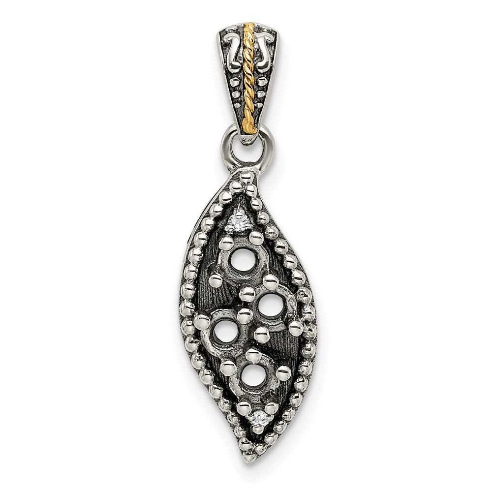 Sterling Silver Antique w/14k 4-stone w/Diamond Family Pendant w/18in Chain