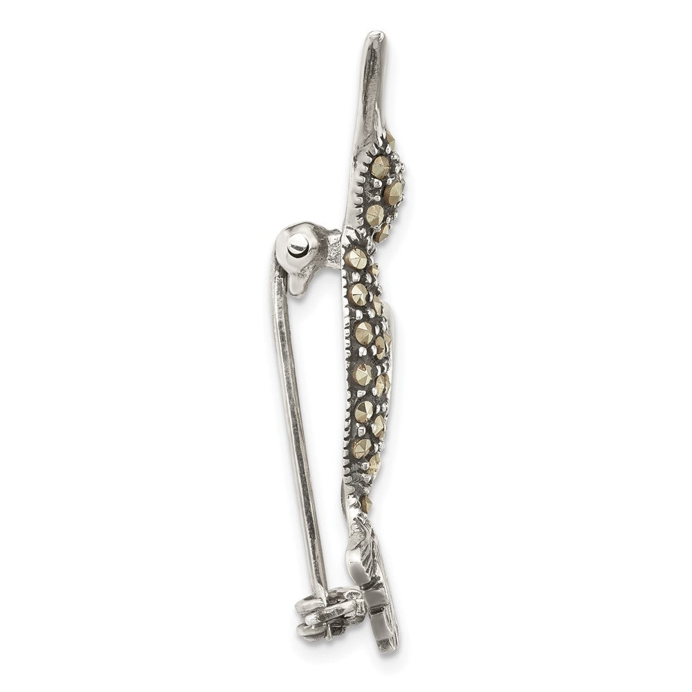 Sterling Silver Antiqued Hummingbird Marcasite Pin Brooch