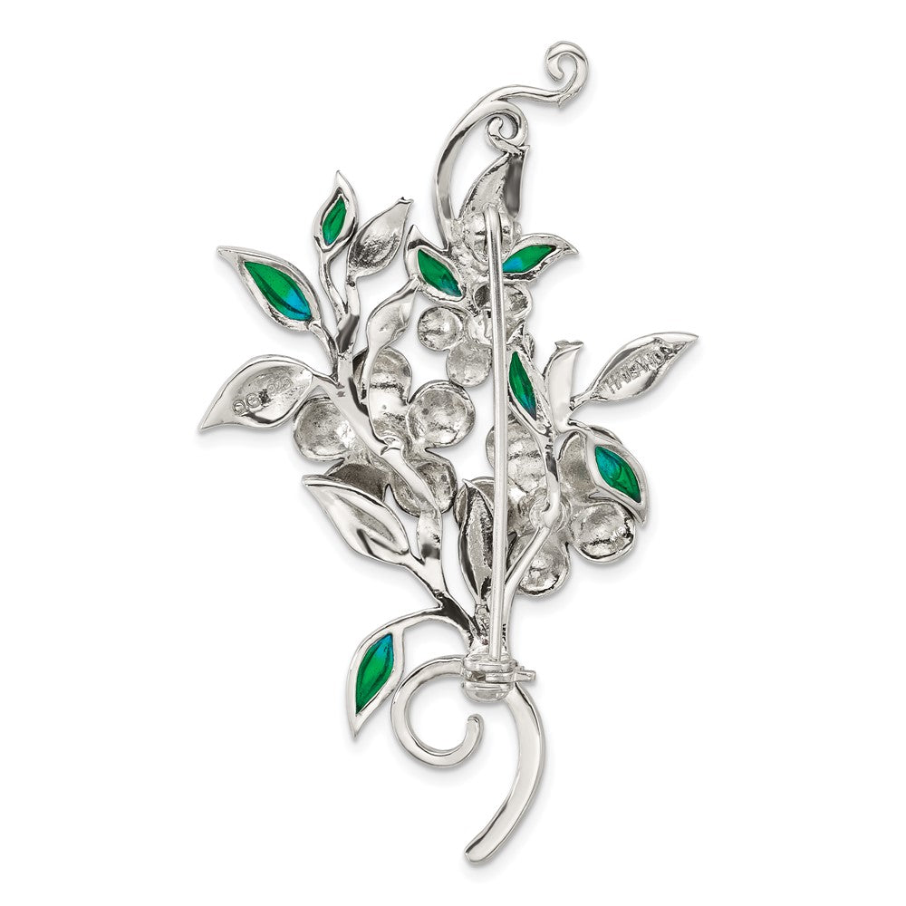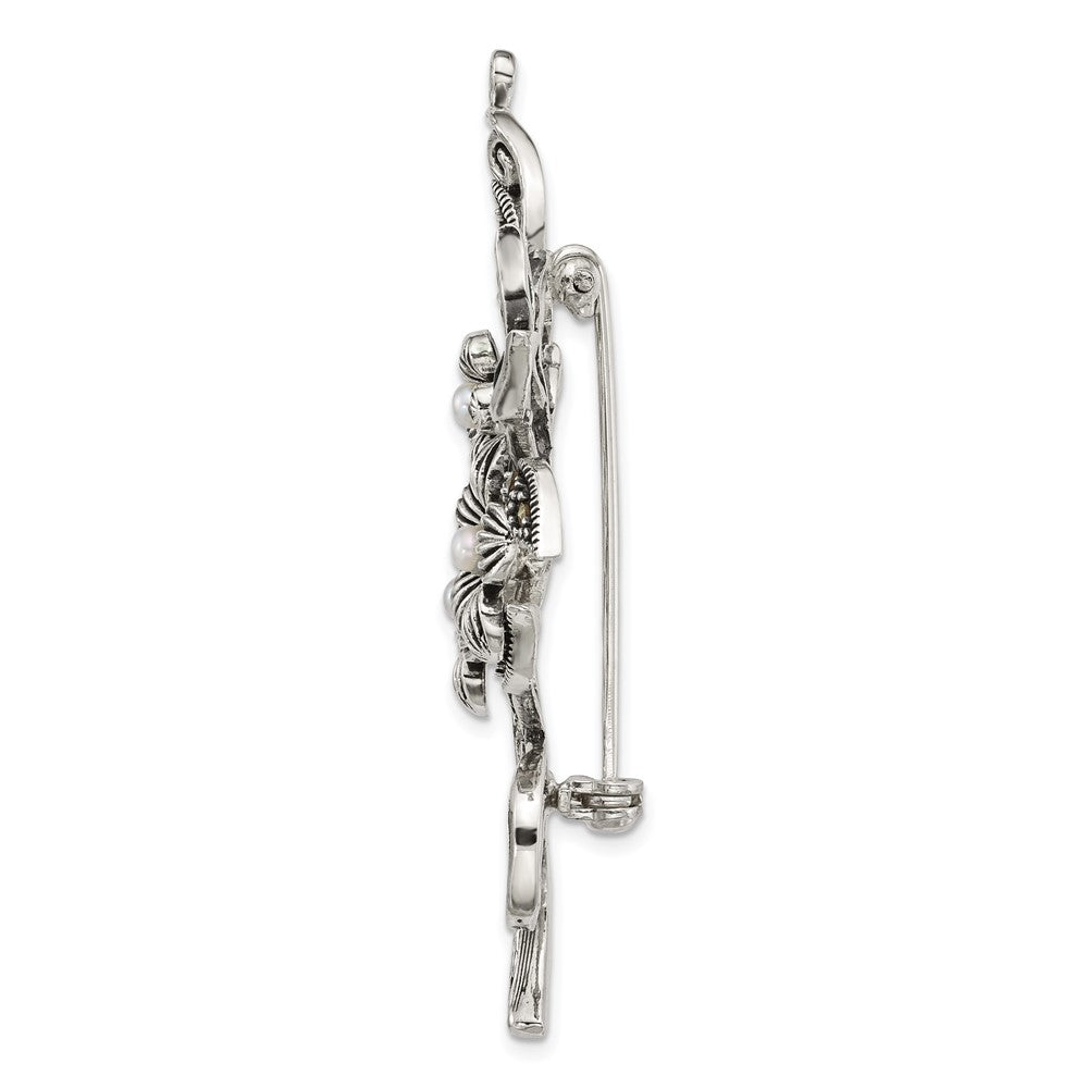 Sterling Silver Antiqued Marcasite and Freshwater Cultured Pearl with Green Epoxy Floral Pin