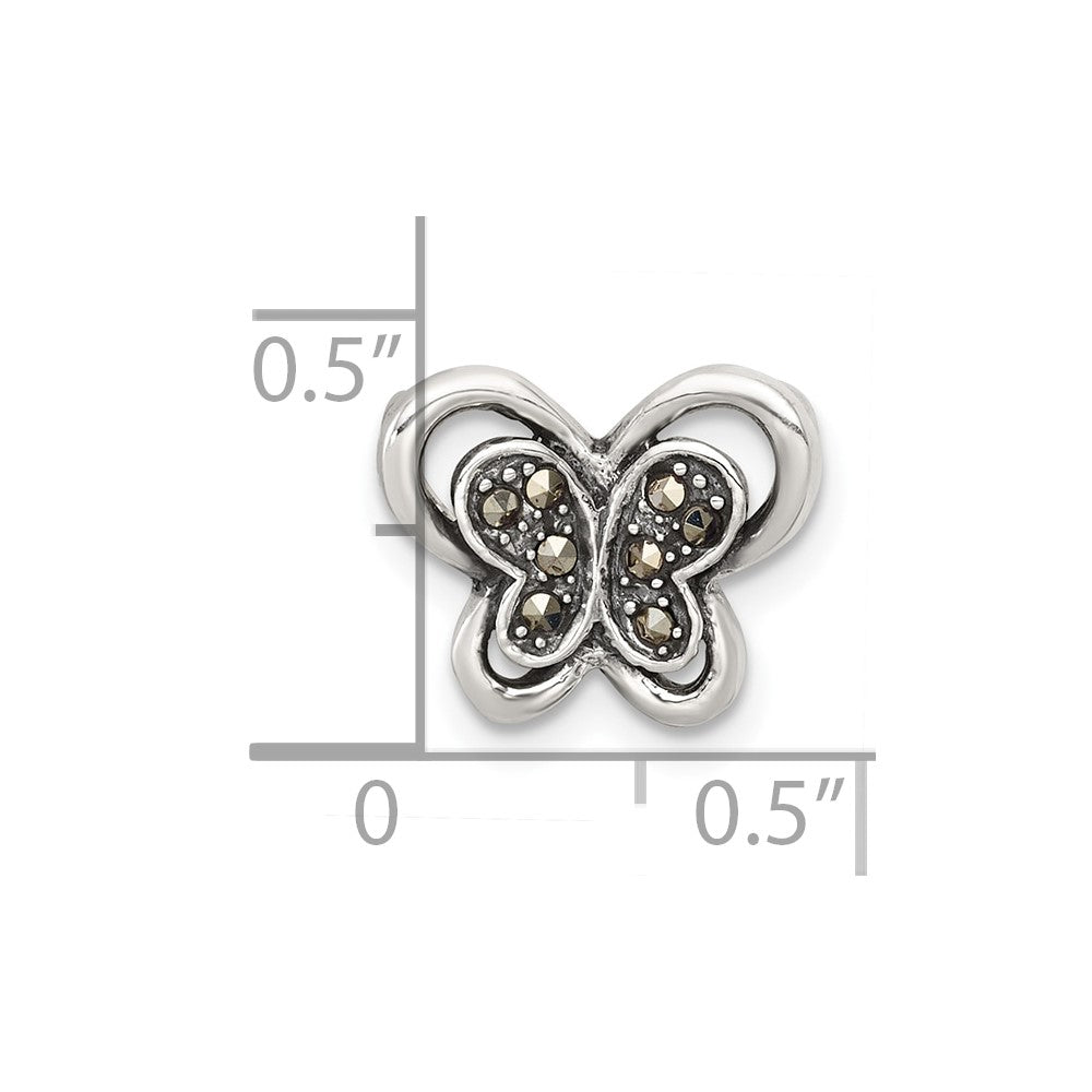 Sterling Silver Antiqued Marcasite Butterfly Chain Slide Pendant