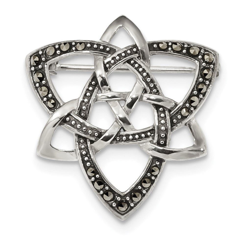 Sterling Silver Antiqued Marcasite Celtic Knot Pin Brooch