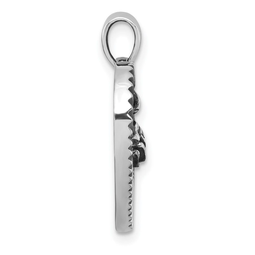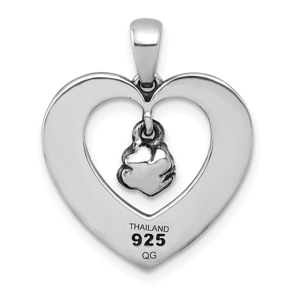 Sterling Silver Antiqued Polished Open Heart With Dangling Flower Pendant