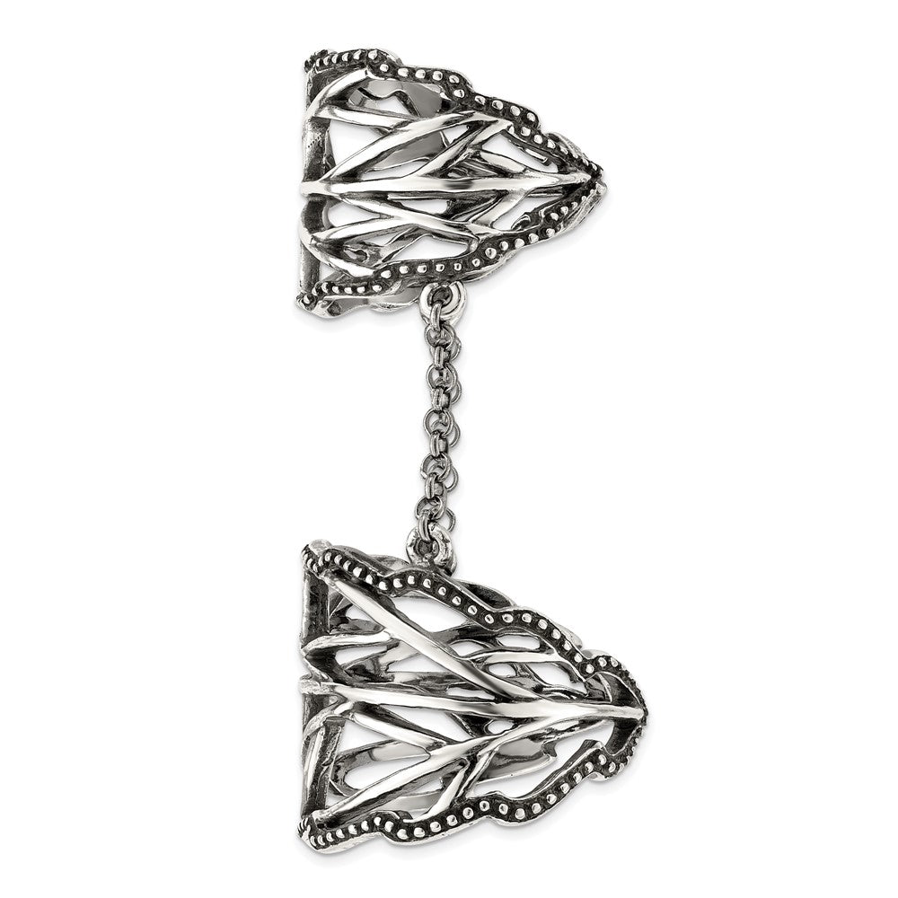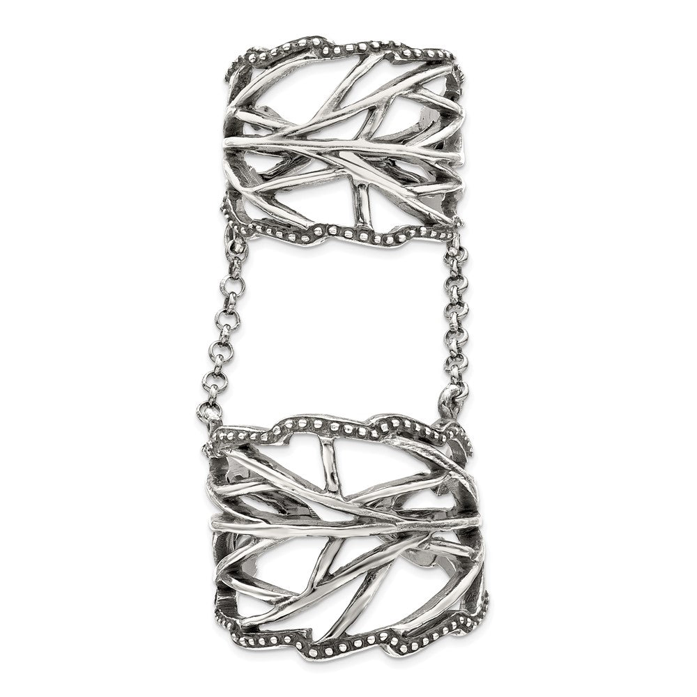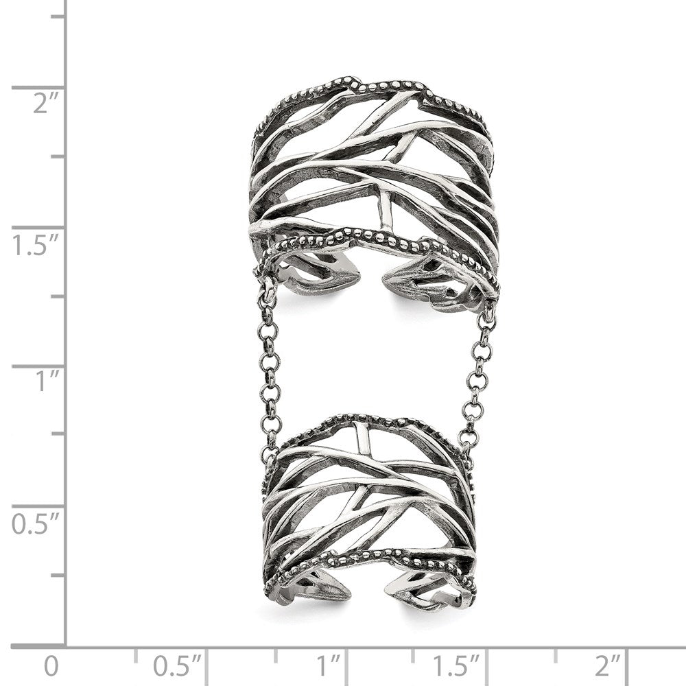 Sterling Silver Antiqued Polished Textured Full Finger Adjustable Ring