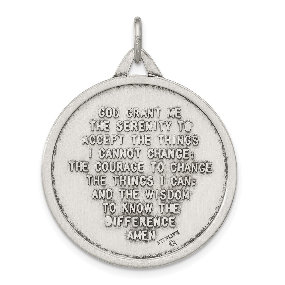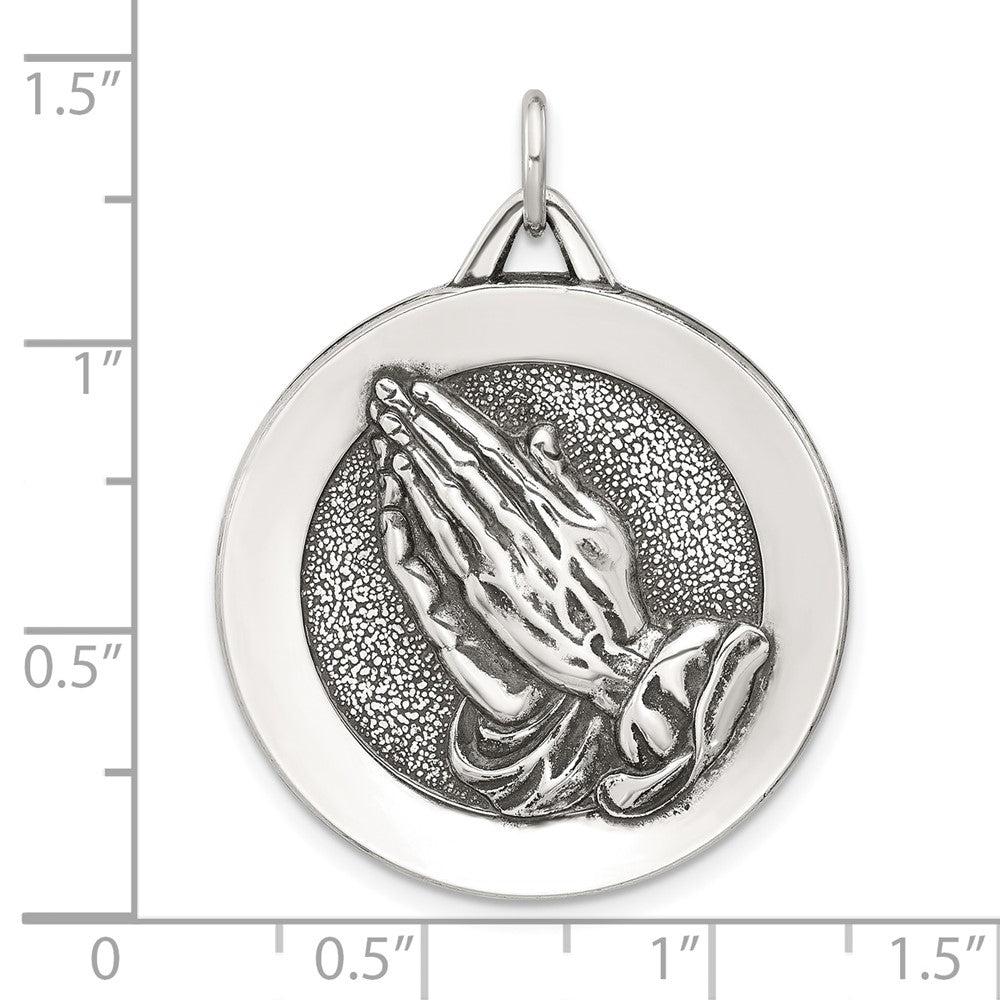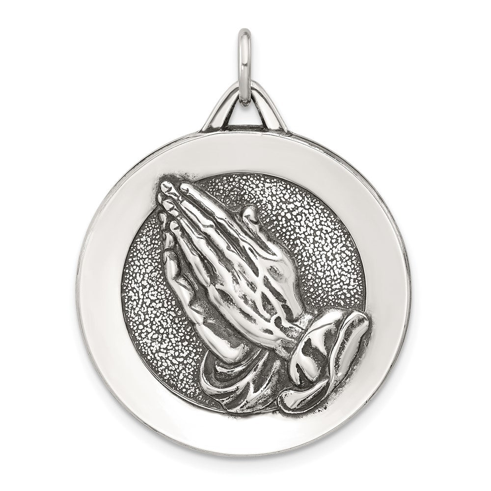 Sterling Silver Antiqued Solid Praying Hands Serenity Prayer Pendant