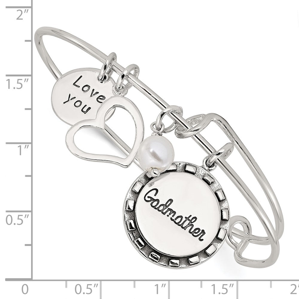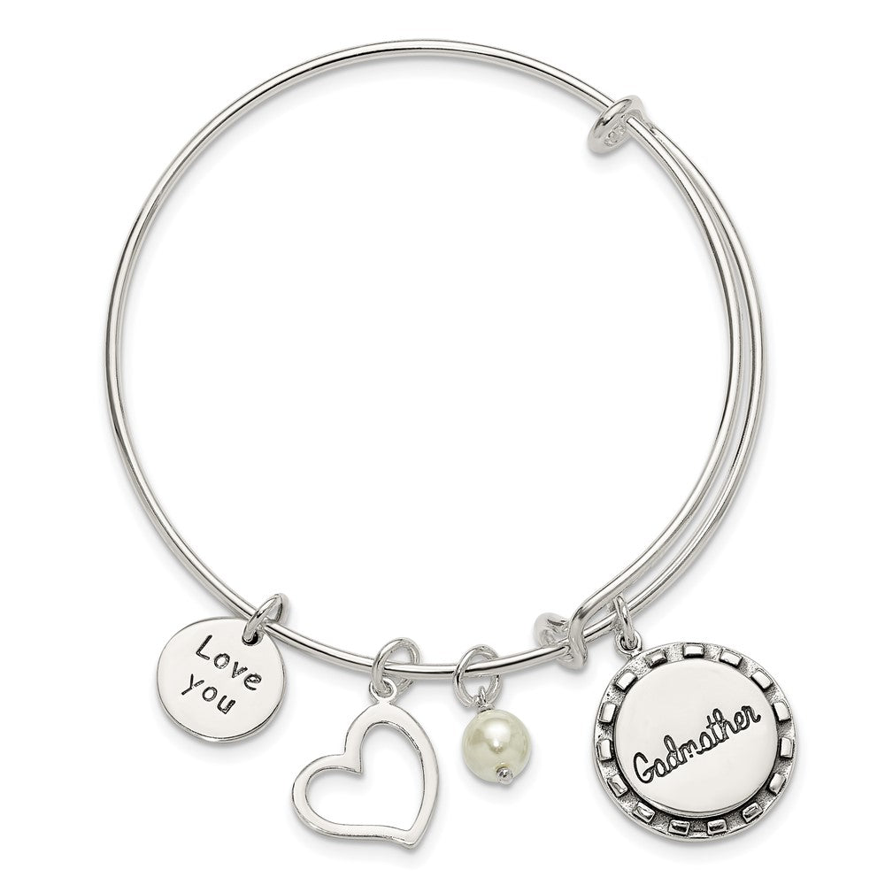 Sterling Silver Antiqued Syn. Pearl Godmother Charm Adjustable Bangle