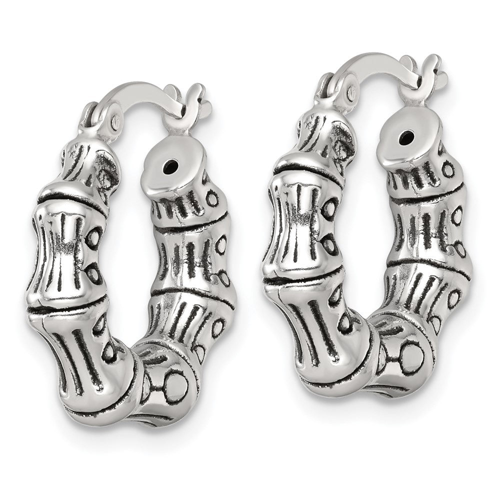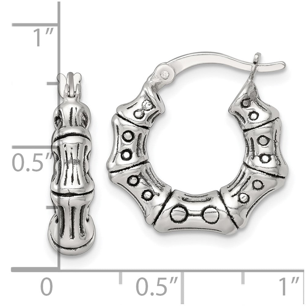 Sterling Silver Antiqued Textured Bamboo Round Hoop Earrings