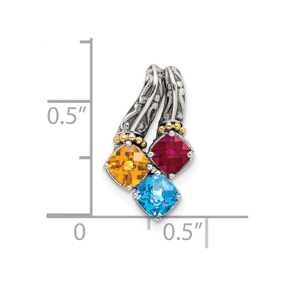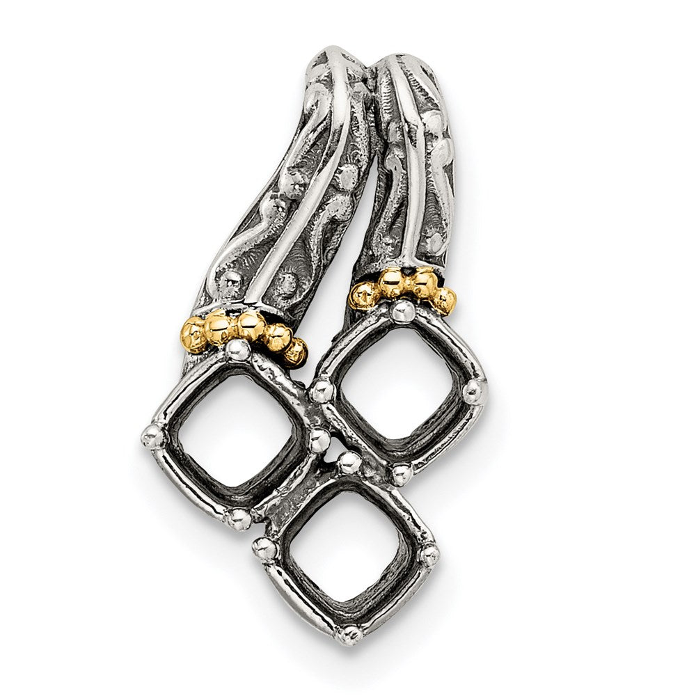 Sterling Silver Antiqued w/14k 3-stone Mother's Pendant