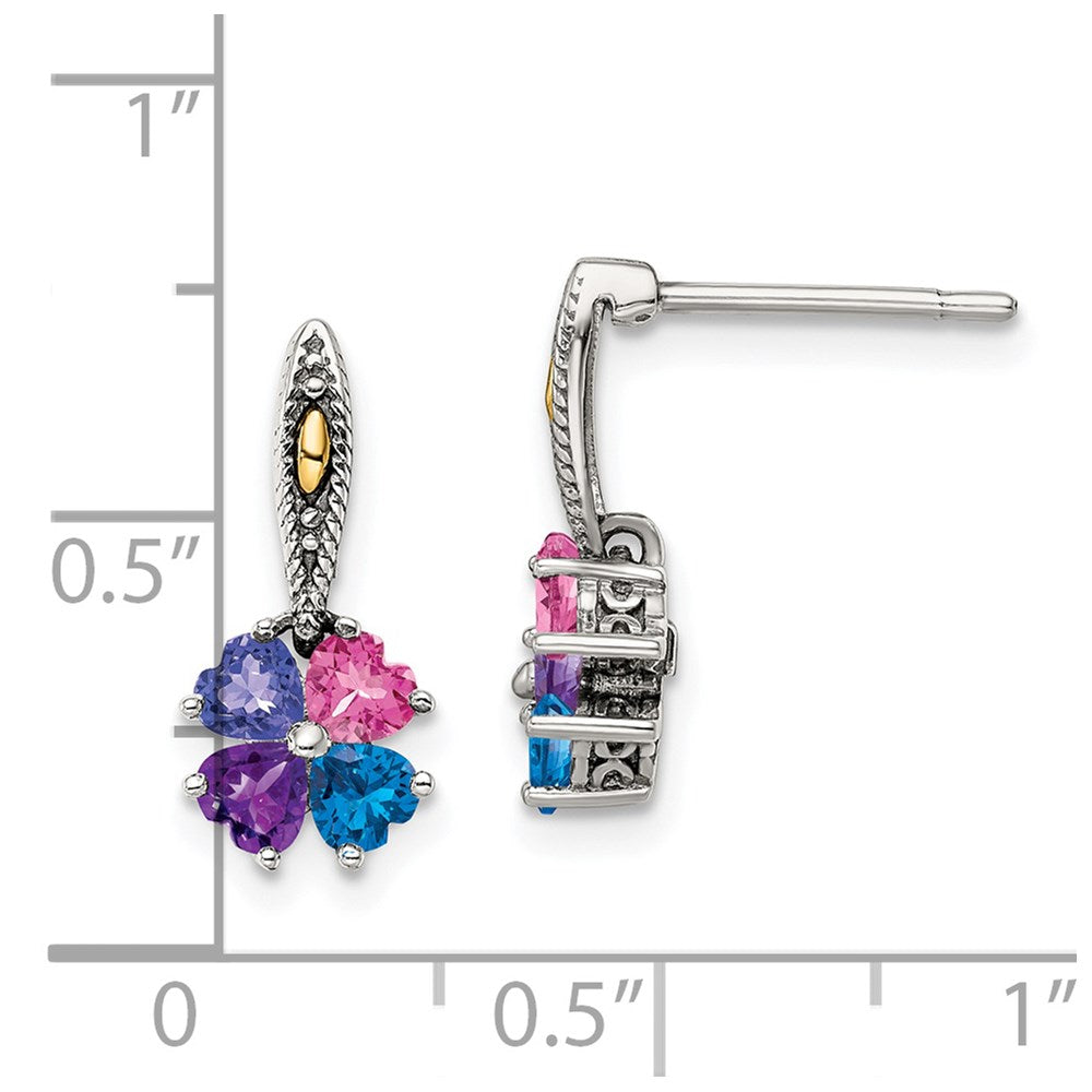 Sterling Silver Antiqued w/14k 4-stone Mother's Earring