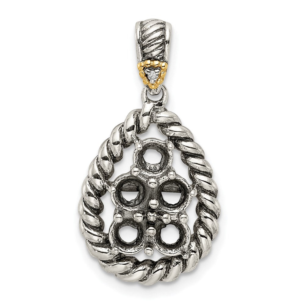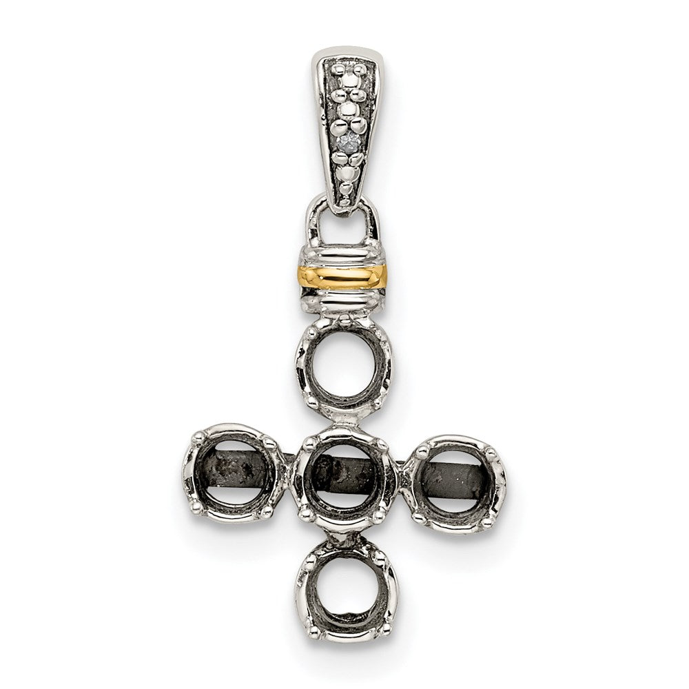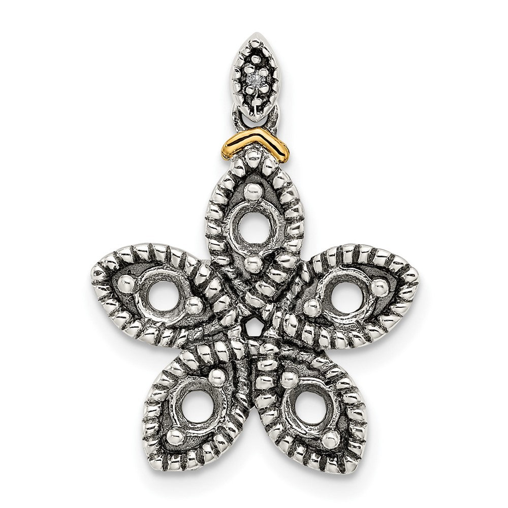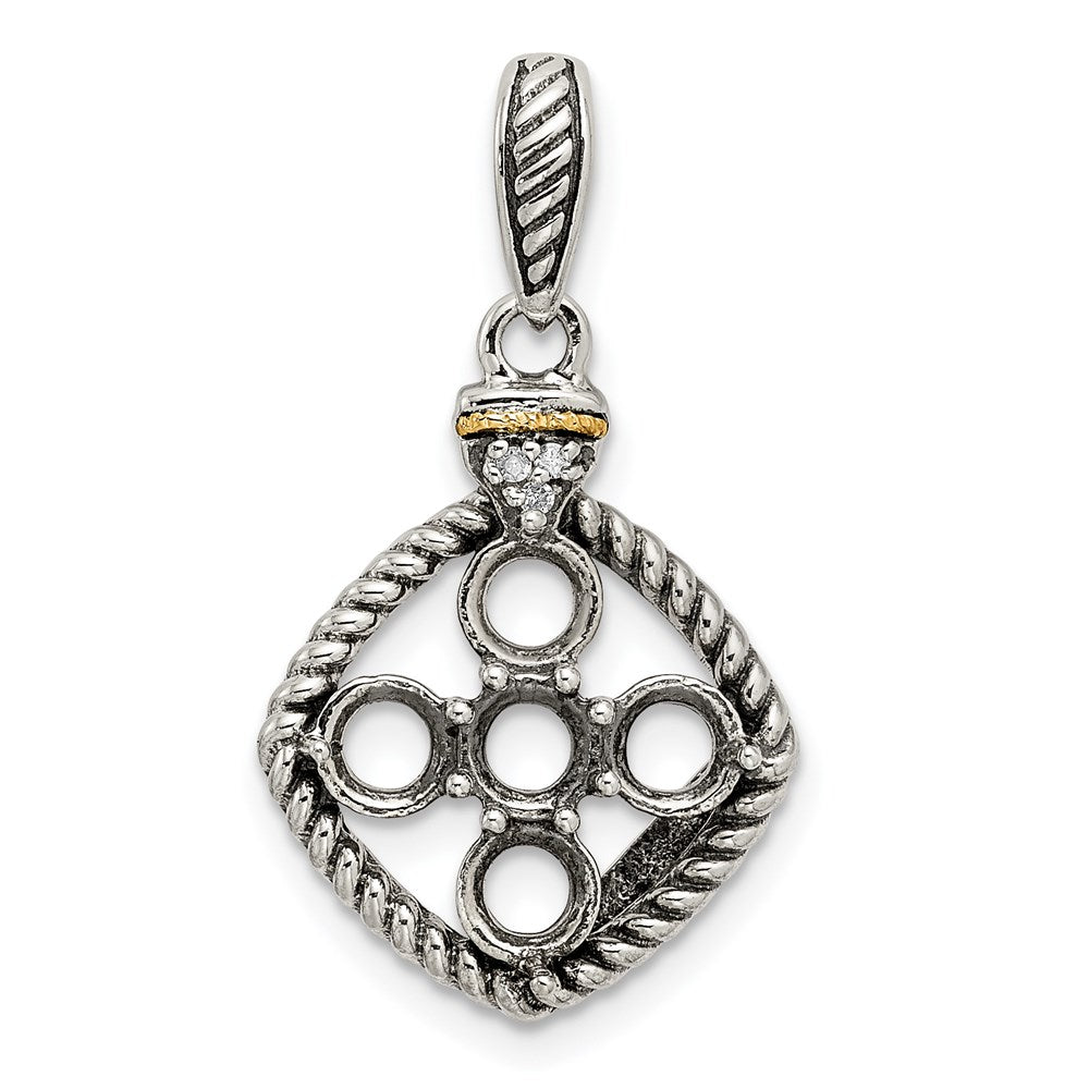 Sterling Silver Antiqued w/14k 5-stone w/Diamond Mothers Pendant Semi-Mount