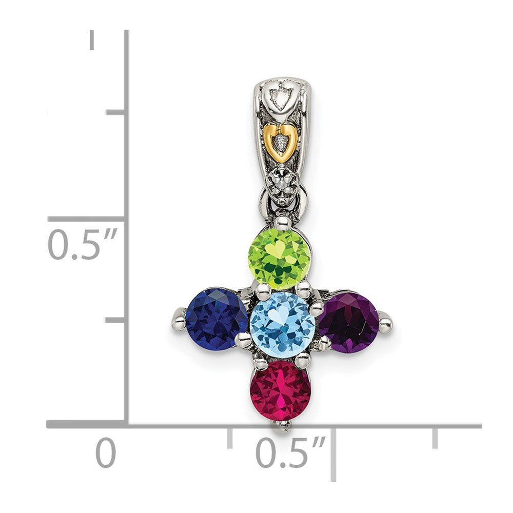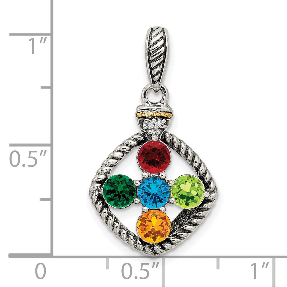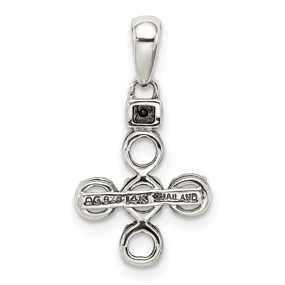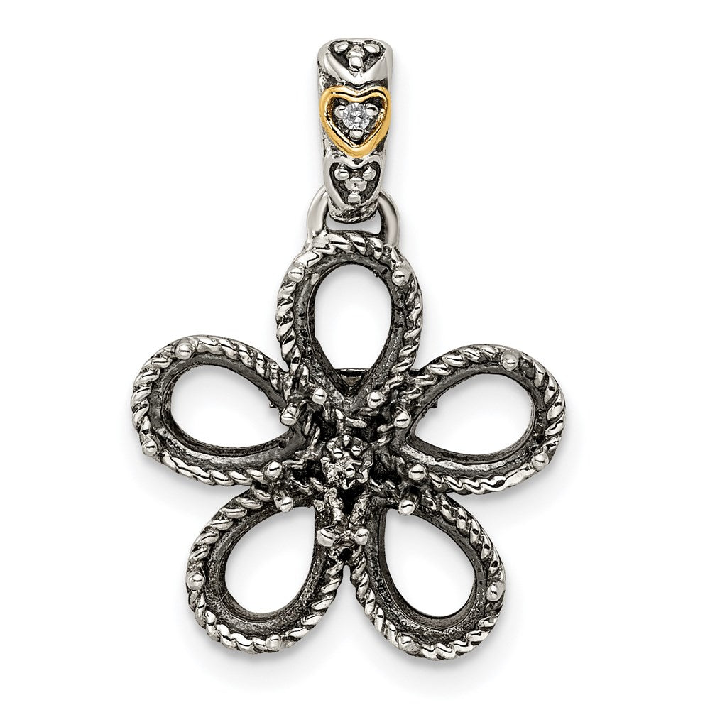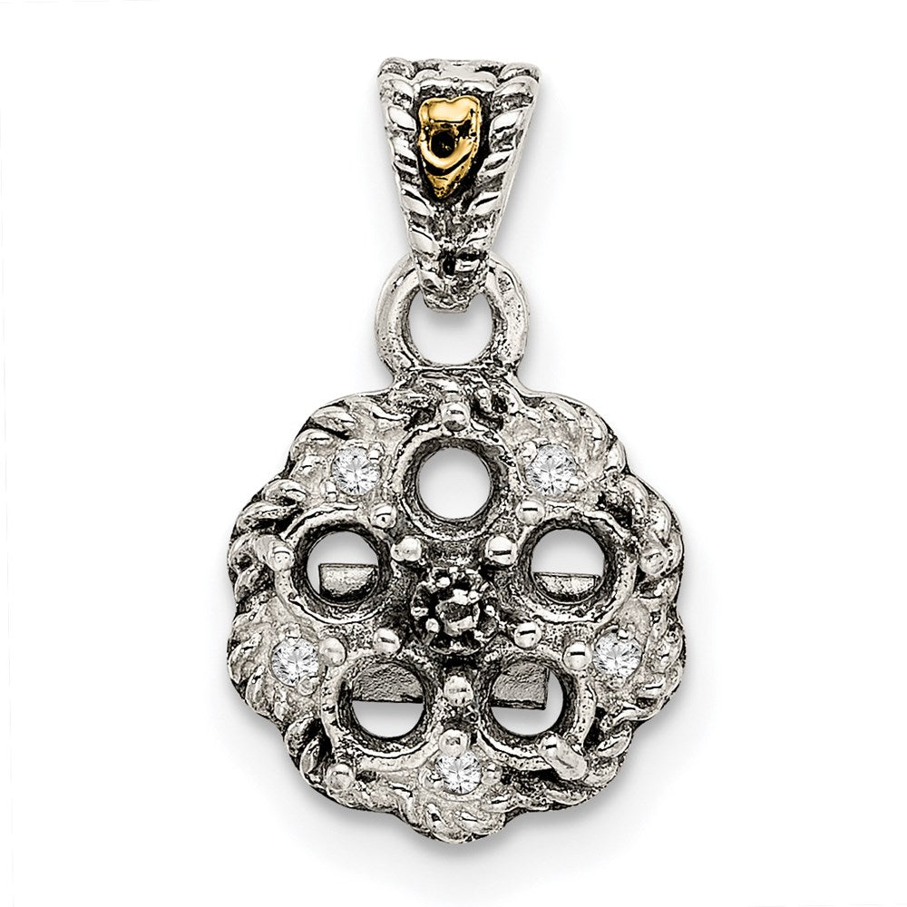 Sterling Silver Antiqued w/14k 5-stone w/Diamond Mothers Pendant Semi-Mount