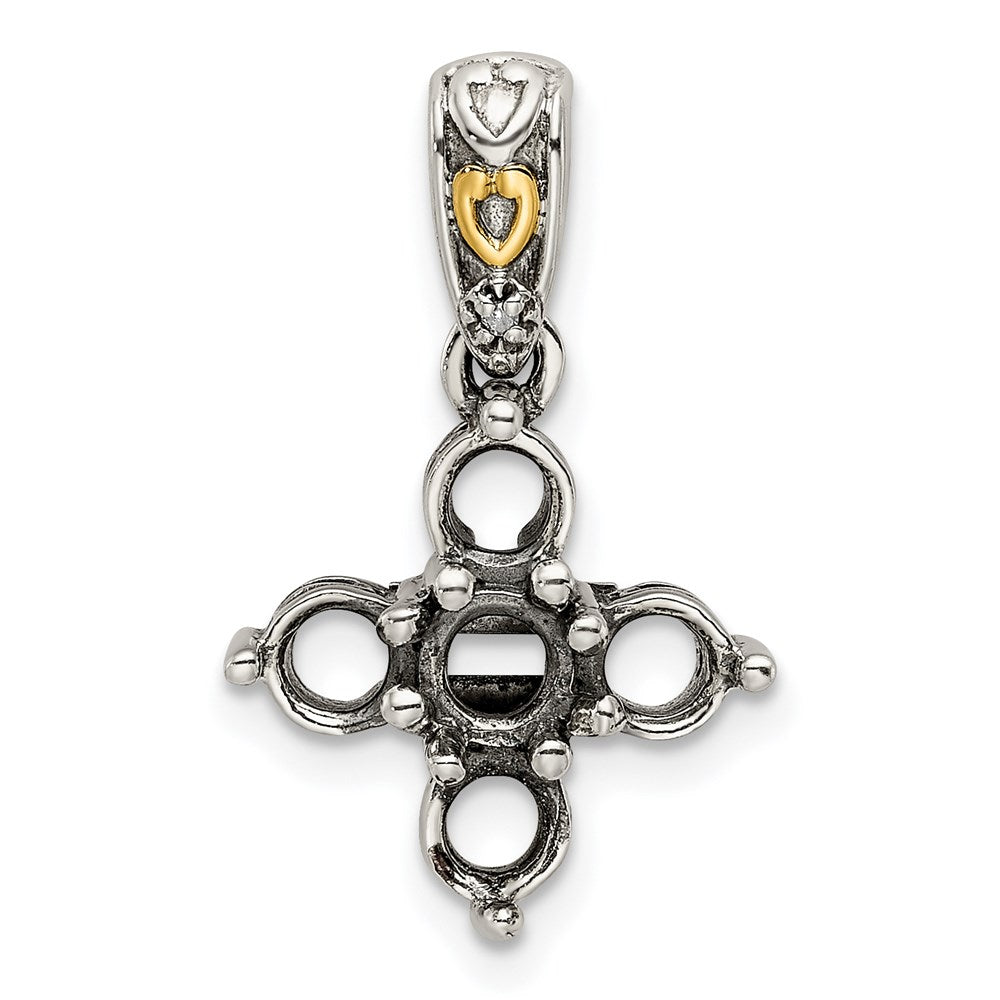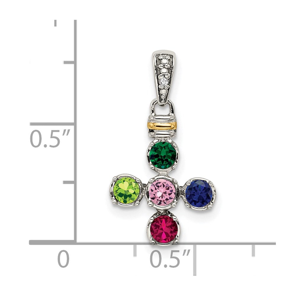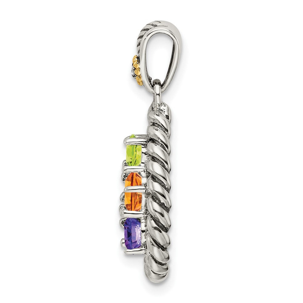 Sterling Silver Antiqued w/14k 5-stone w/Diamond Mother's Pendant
