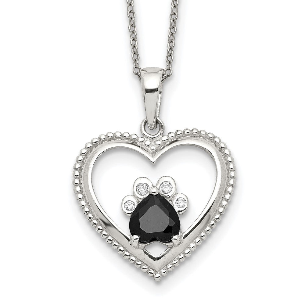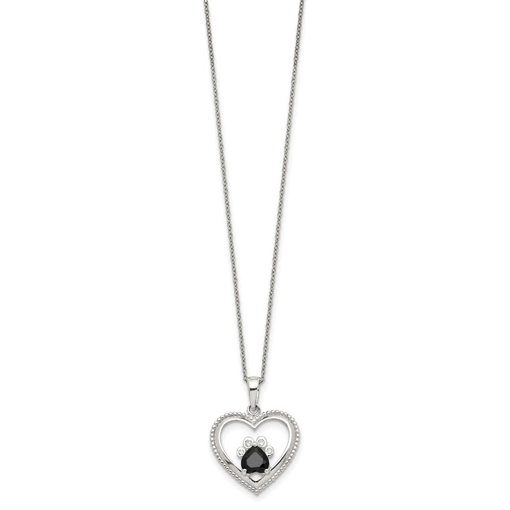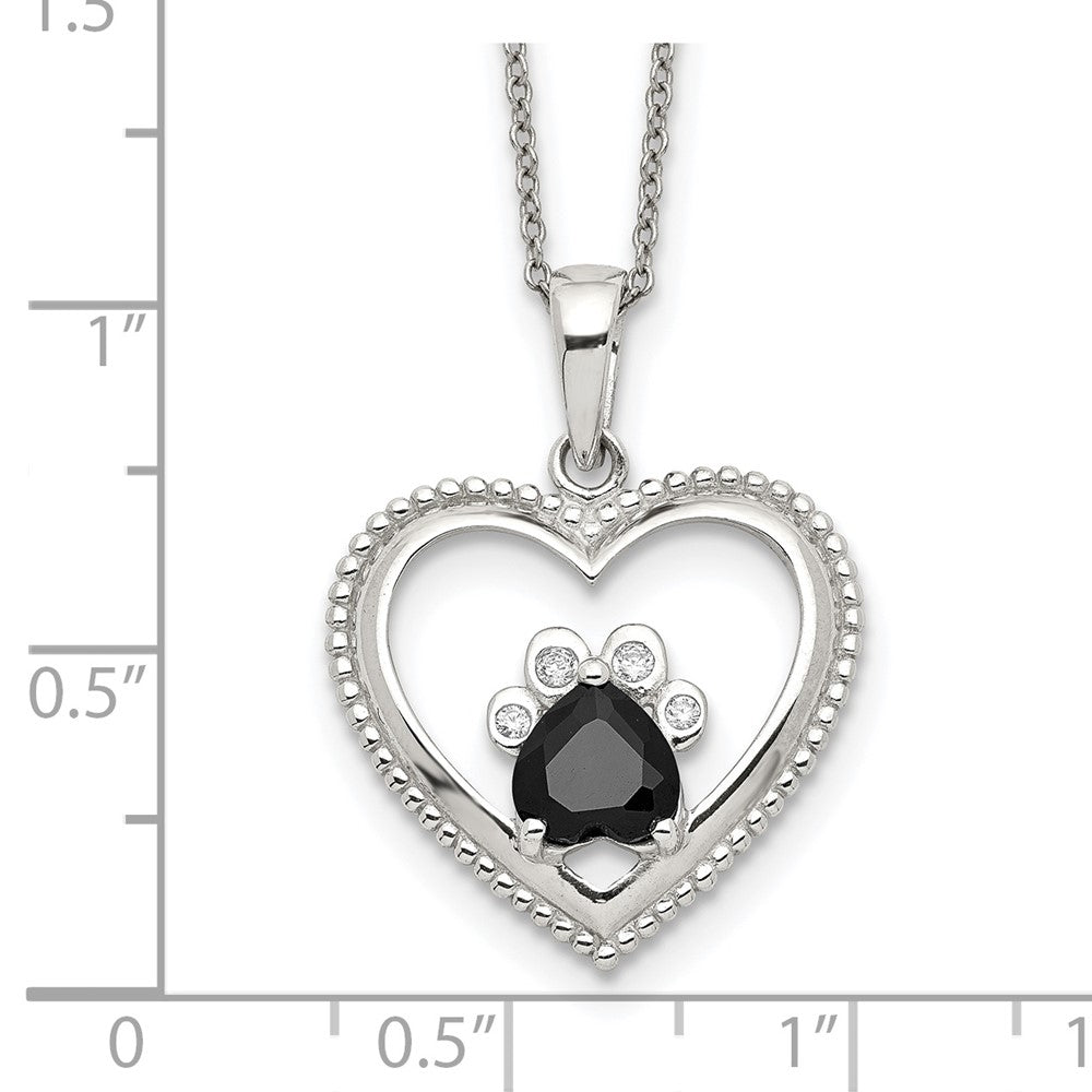 Sterling Silver Black and White CZ Heart with Paw Print Necklace