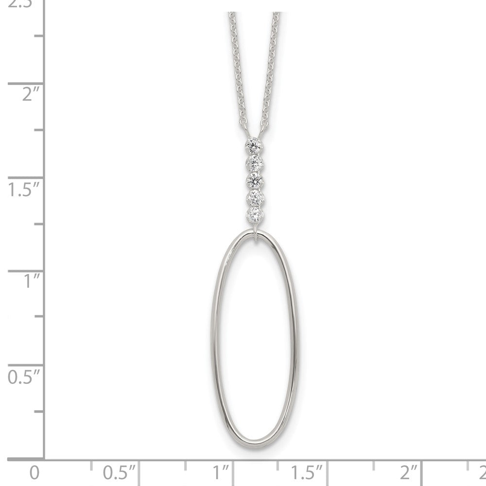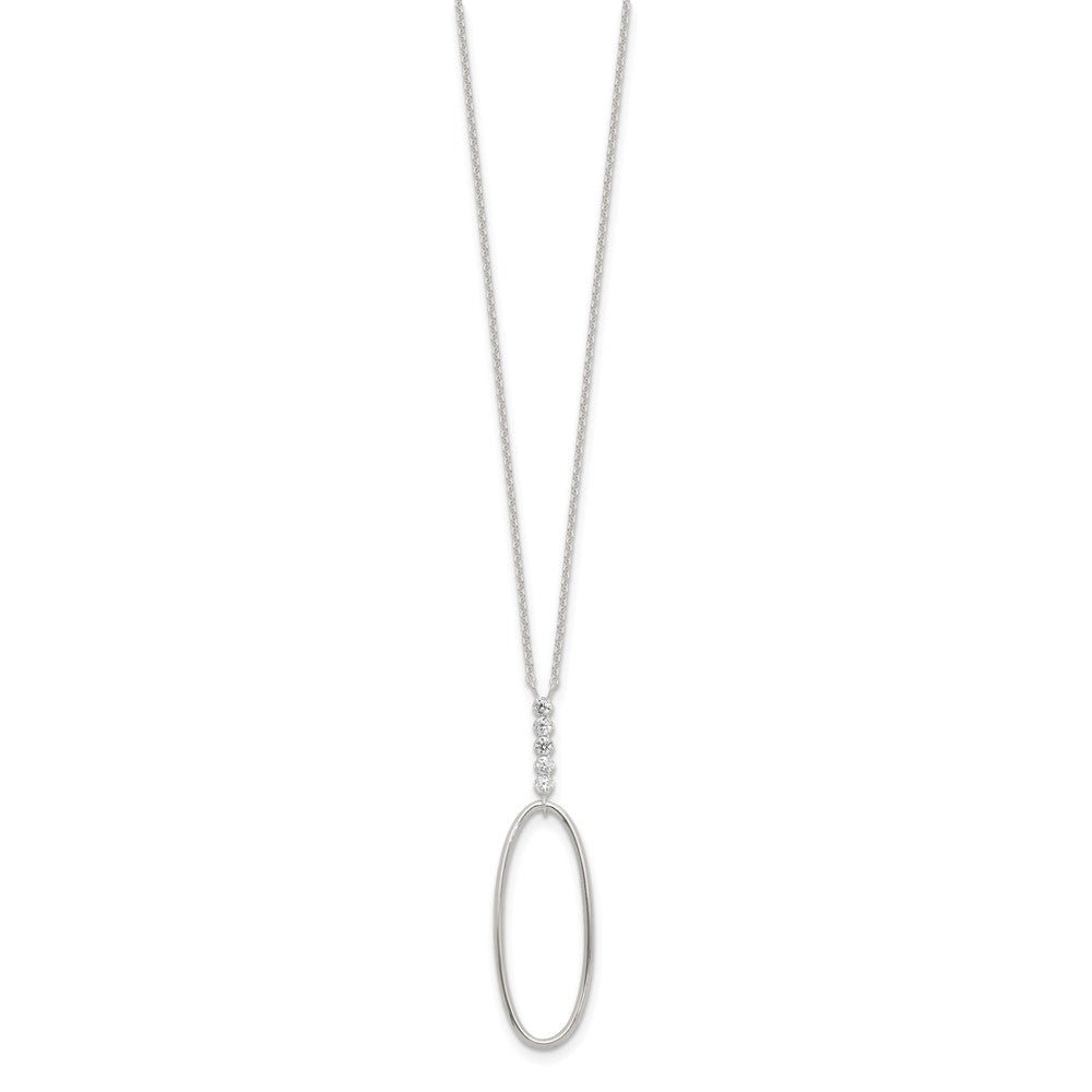 Sterling Silver E-coated CZ Oval Dangle 17.75in Necklace