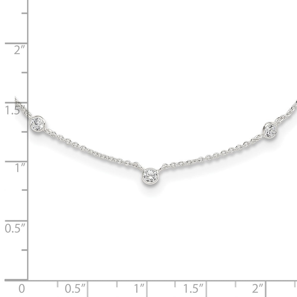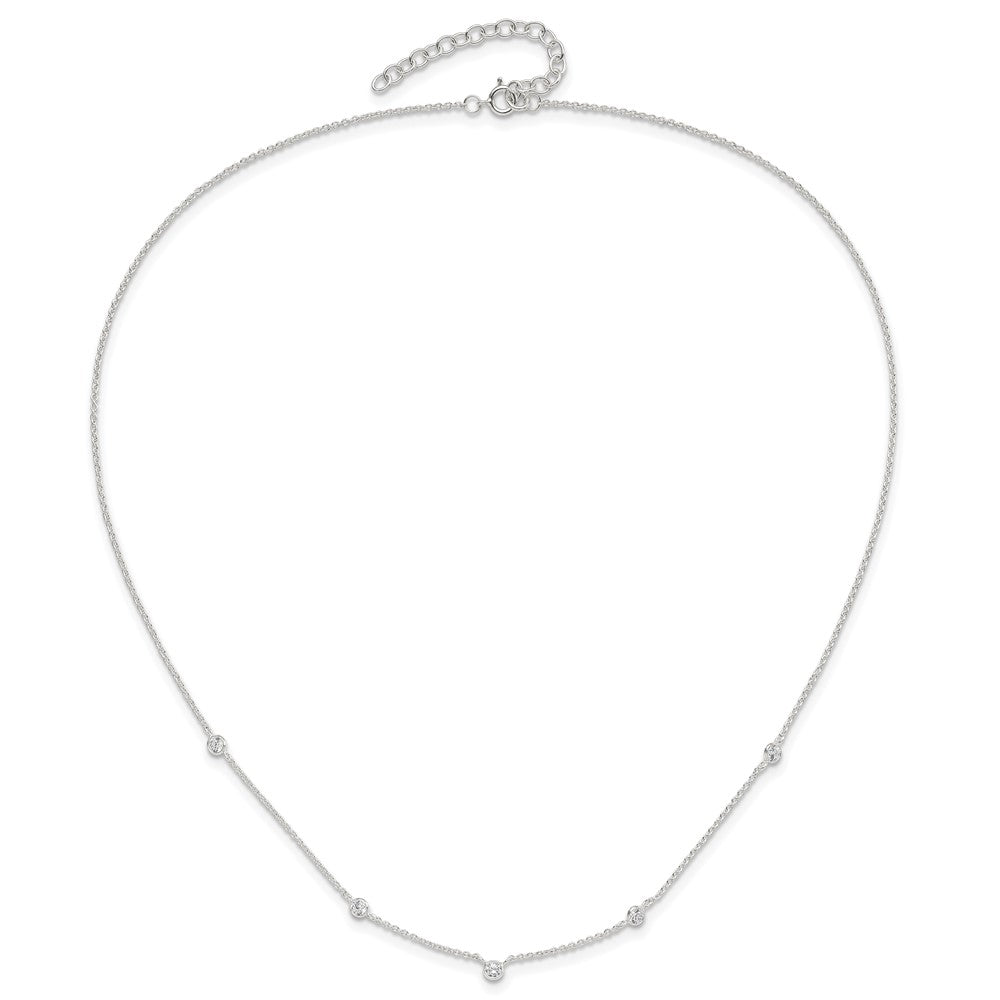 Sterling Silver E-coated CZ Stations 18in w/2in ext Necklace