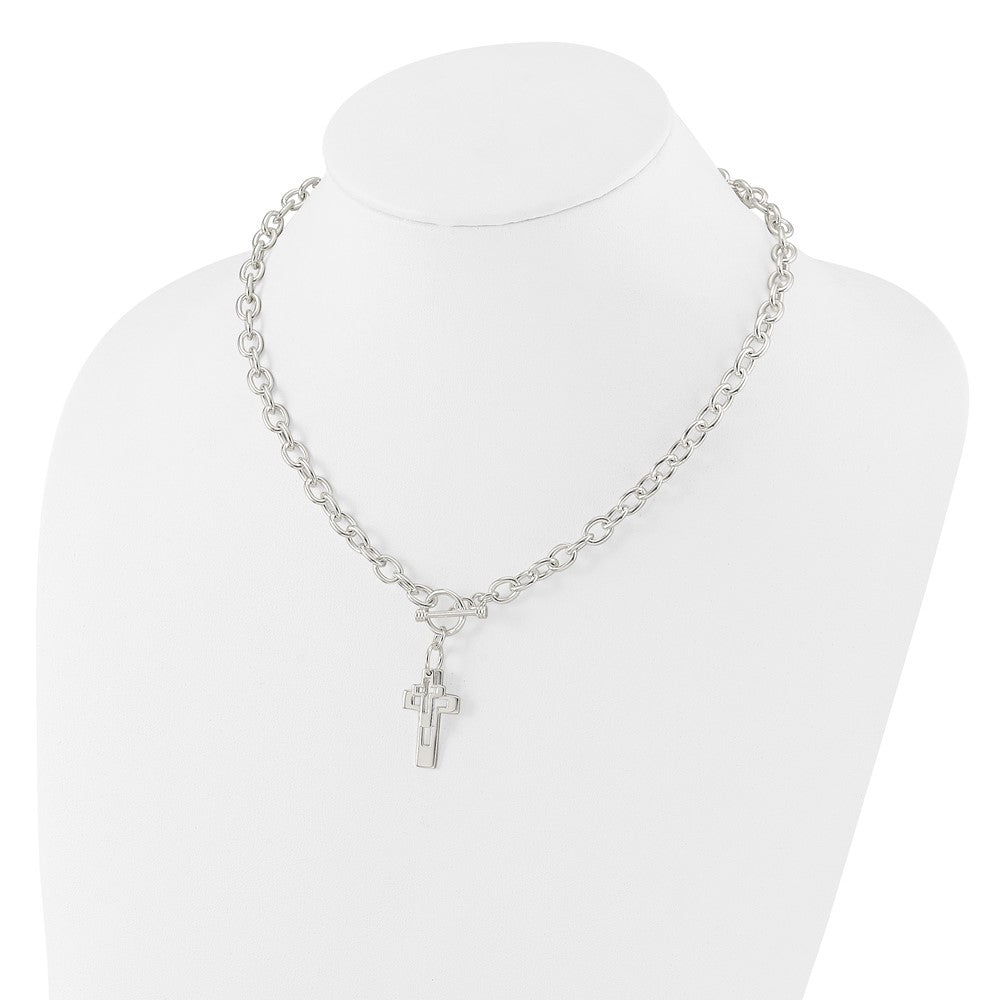Sterling Silver E-Coated Double Open Cross Toggle 18in Necklace
