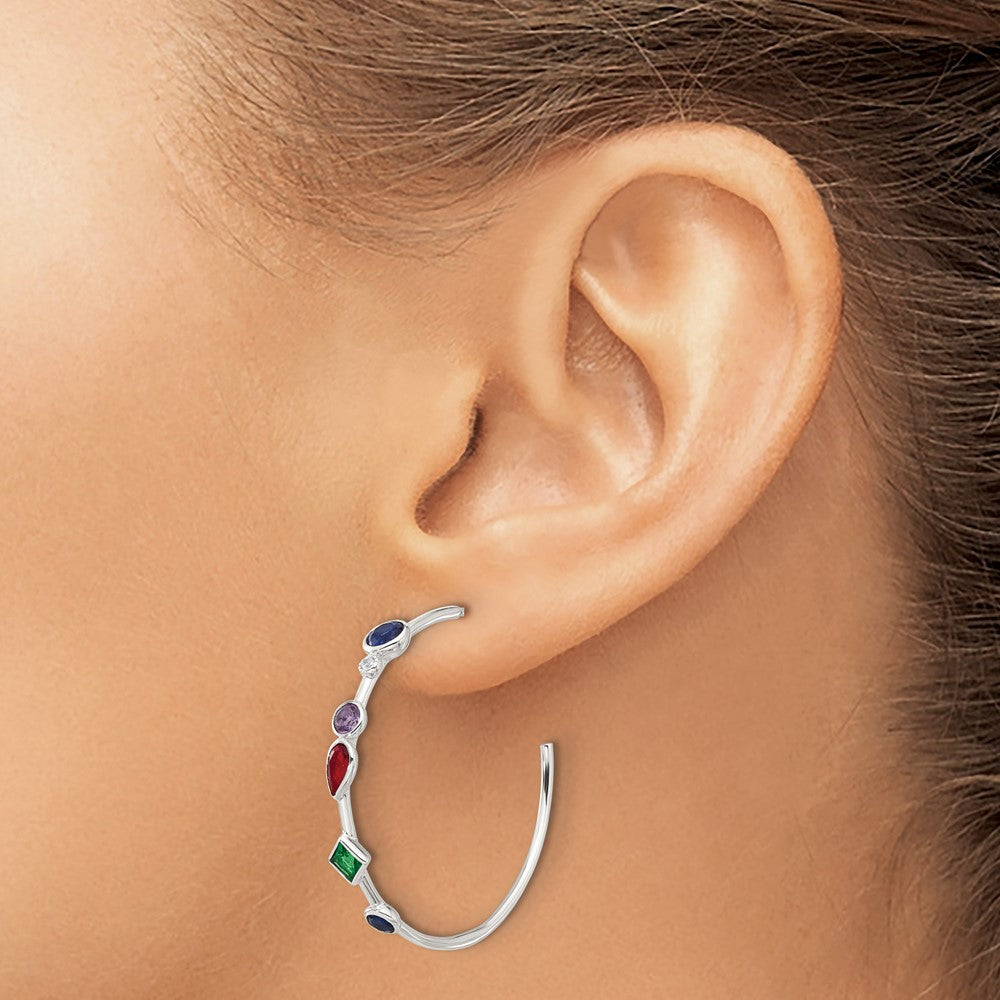 Sterling Silver E-coated Multi Color CZ Post Hoop Earrings