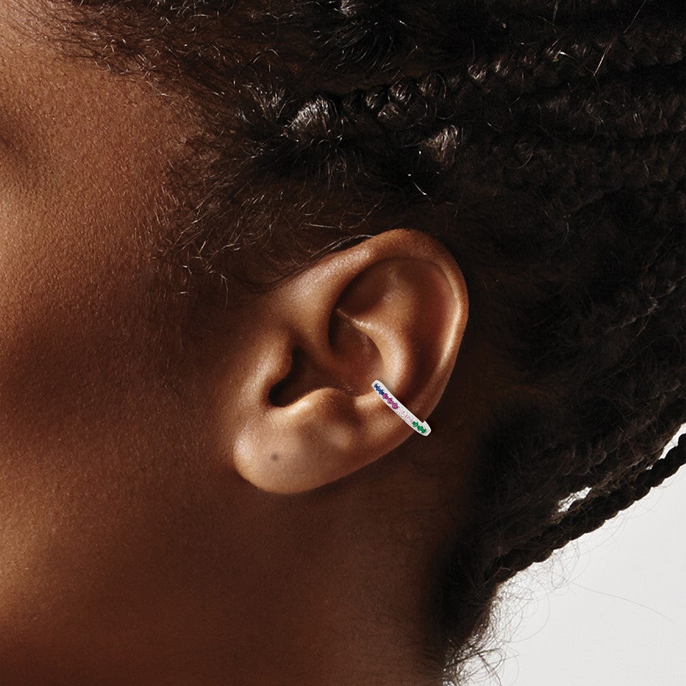 Sterling Silver E-Coating Polished Multicolor CZ Pair of 2 Cuff Earrings