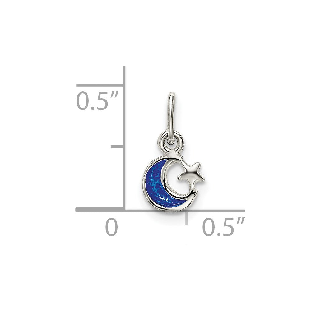 Sterling Silver Enameled Blue Moon and Star Charm