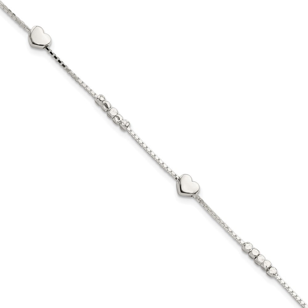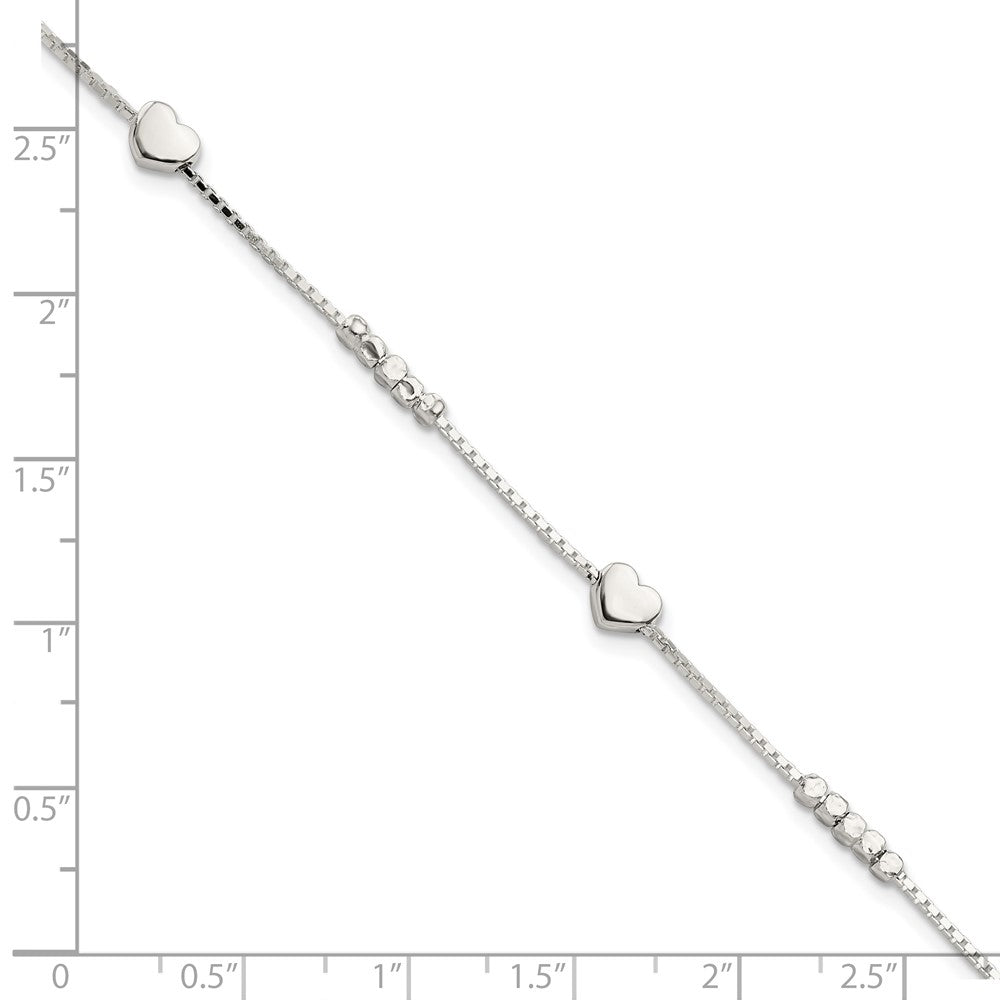 Sterling Silver Fancy Bead & Heart w/ 1in ext Bracelet