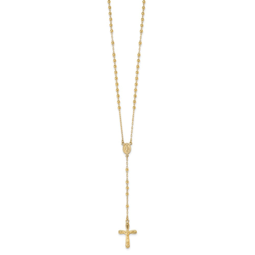 Sterling Silver Flash Gold-plated Polished Crucifix Rosary Necklace