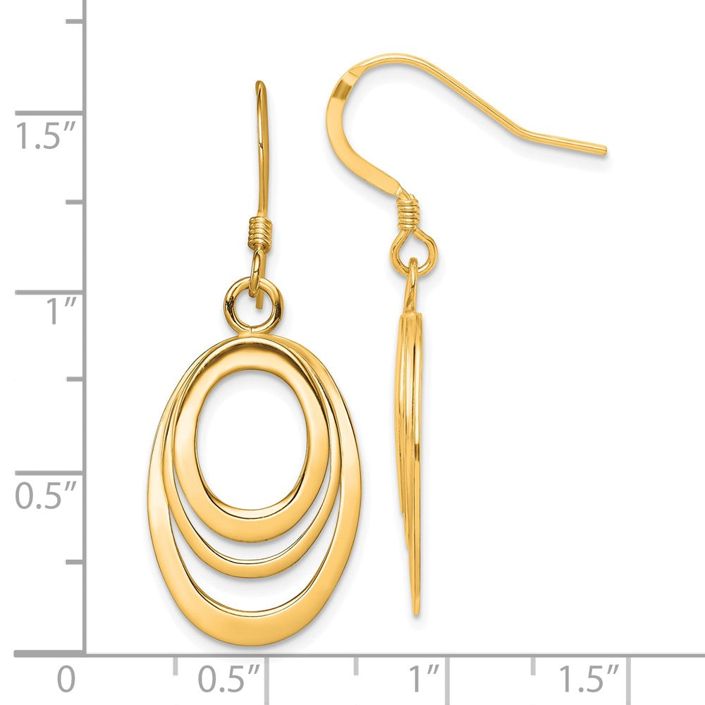 Sterling Silver Flash Gold-plated Polished Triple Oval Dangle Earrings