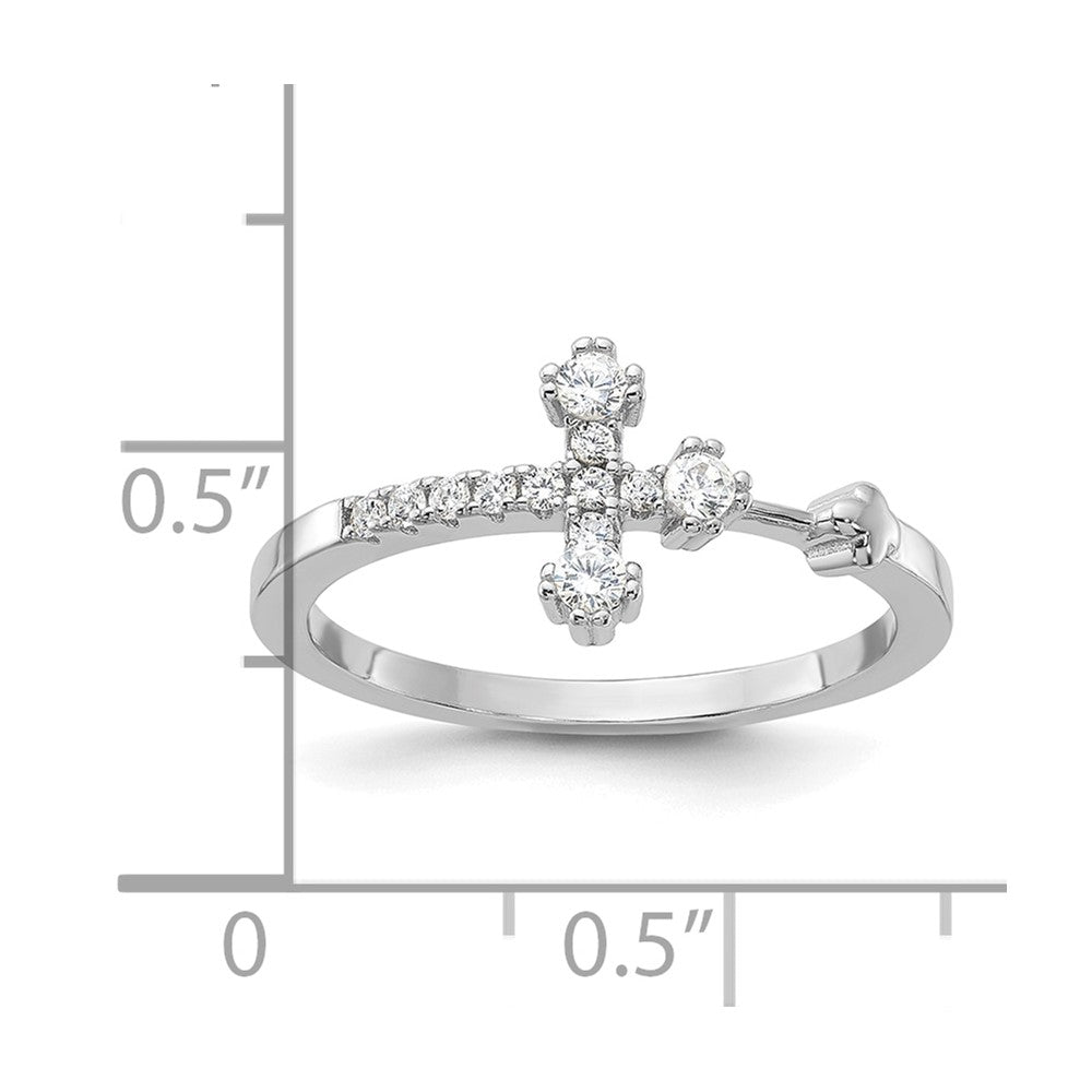 Sterling Silver Flash Platinum-plated CZ Cross Ring
