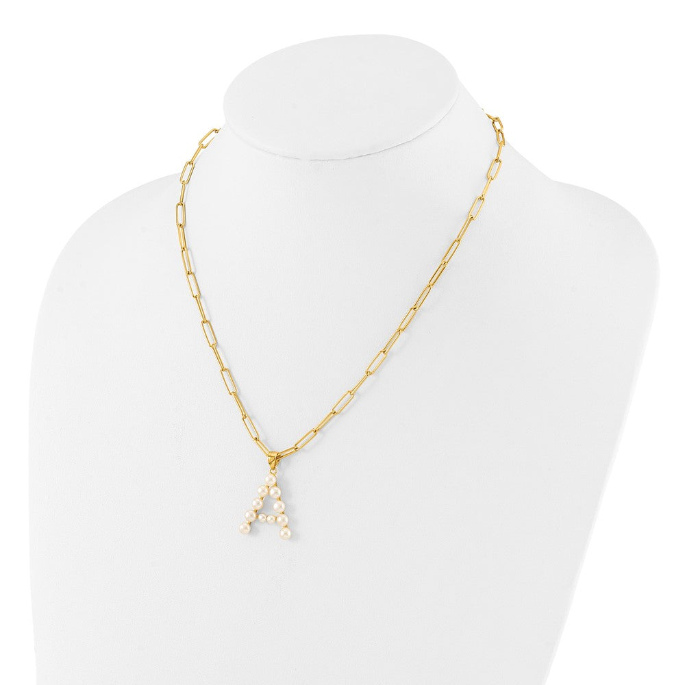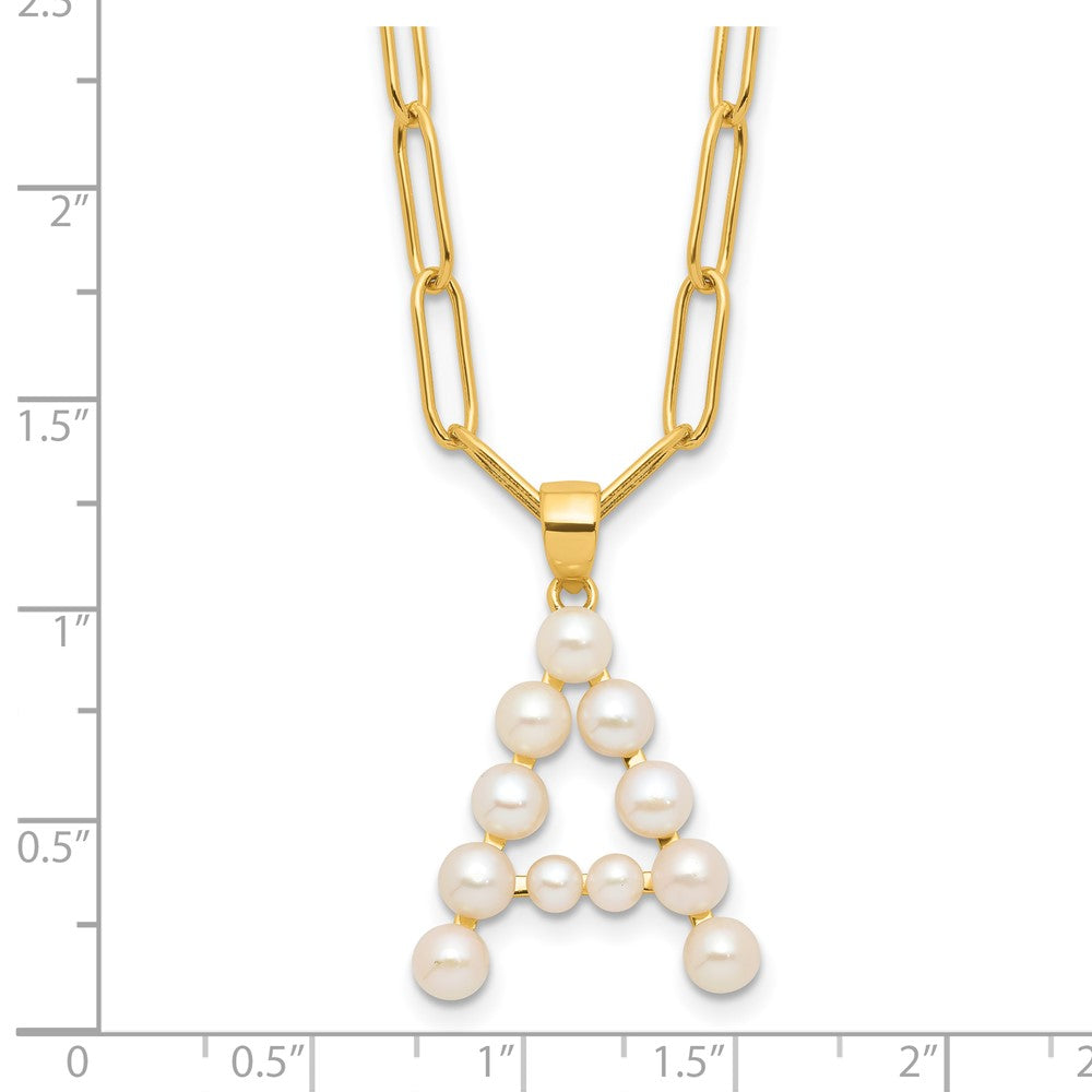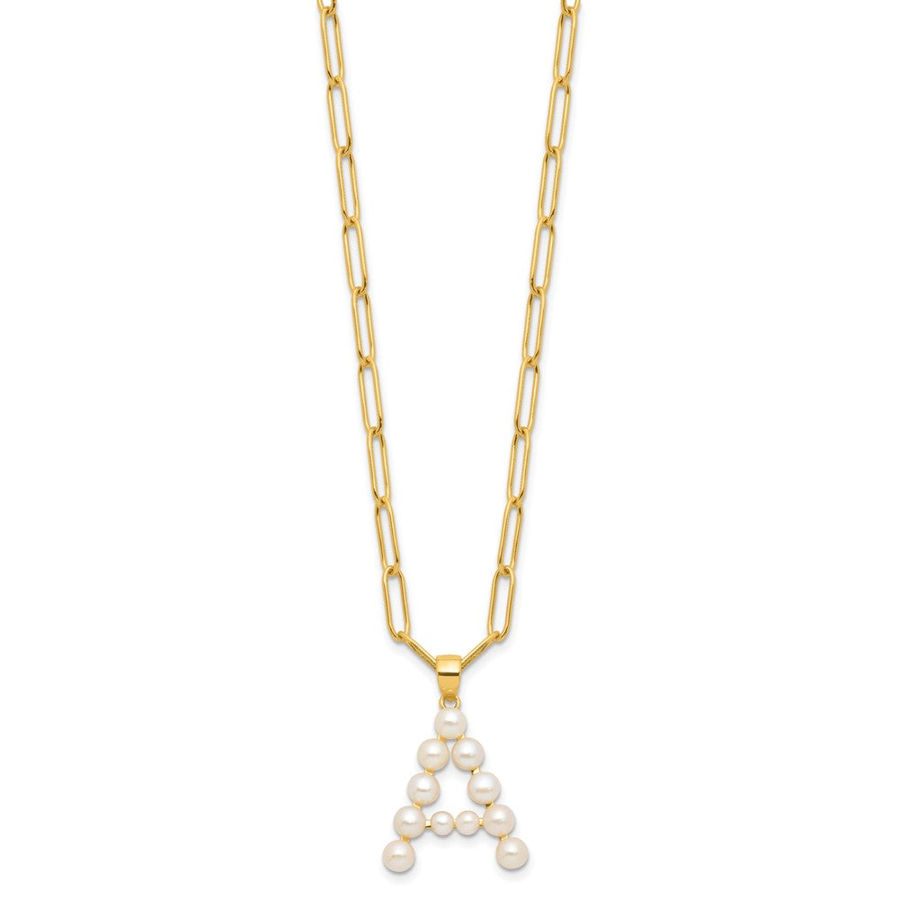 Sterling Silver Gold-plated 3- White Button Freshwater Cultured Pearl LETTER A Necklace