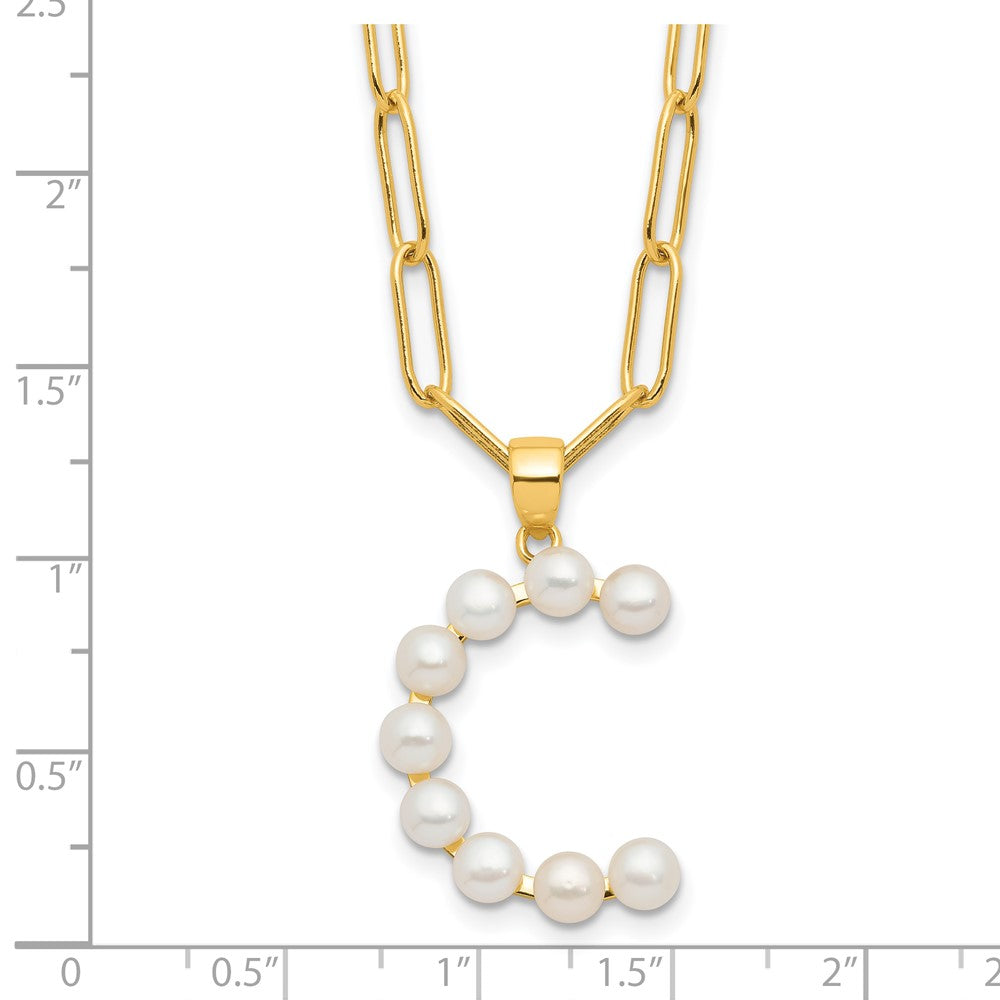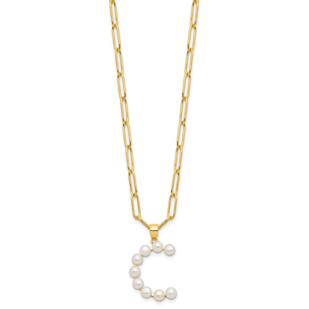Sterling Silver Gold-plated 3- White Button Freshwater Cultured Pearl LETTER C Necklace