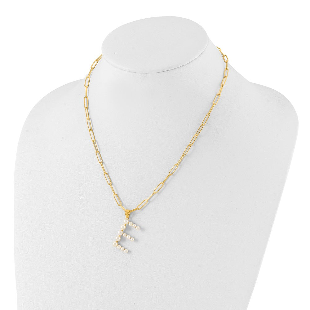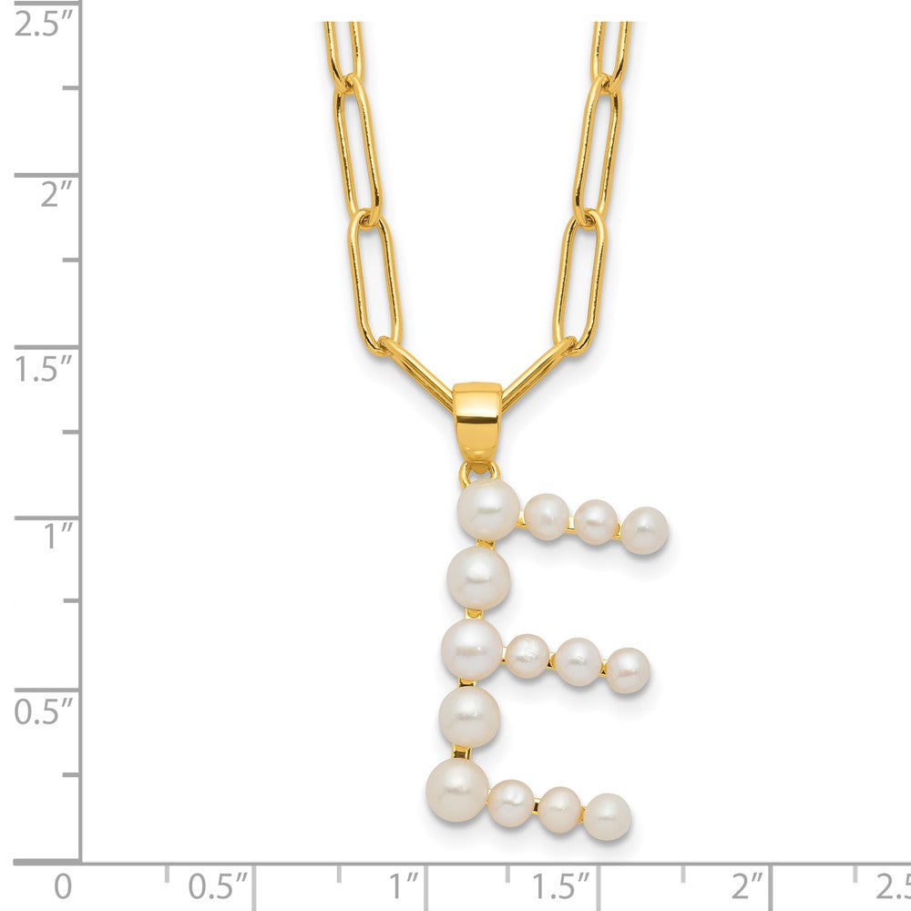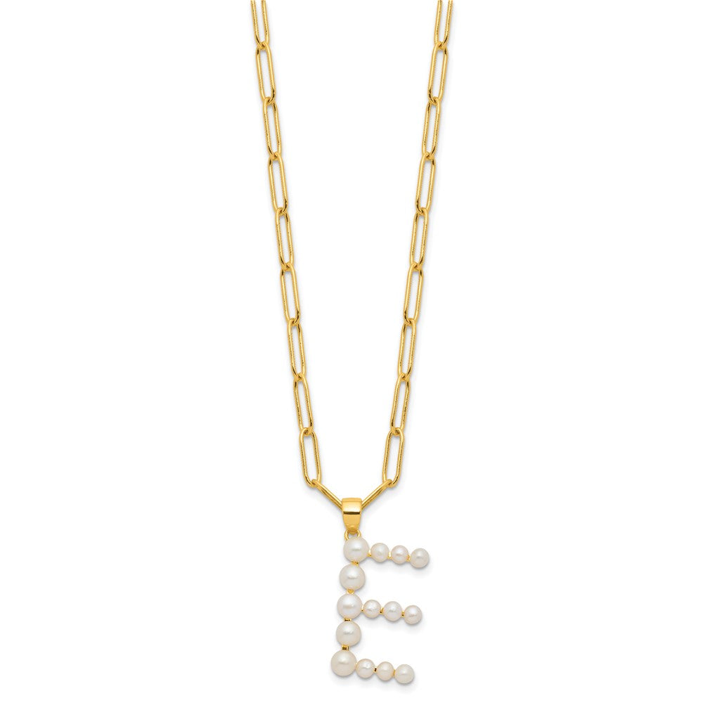 Sterling Silver Gold-plated 3- White Button Freshwater Cultured Pearl LETTER E Necklace