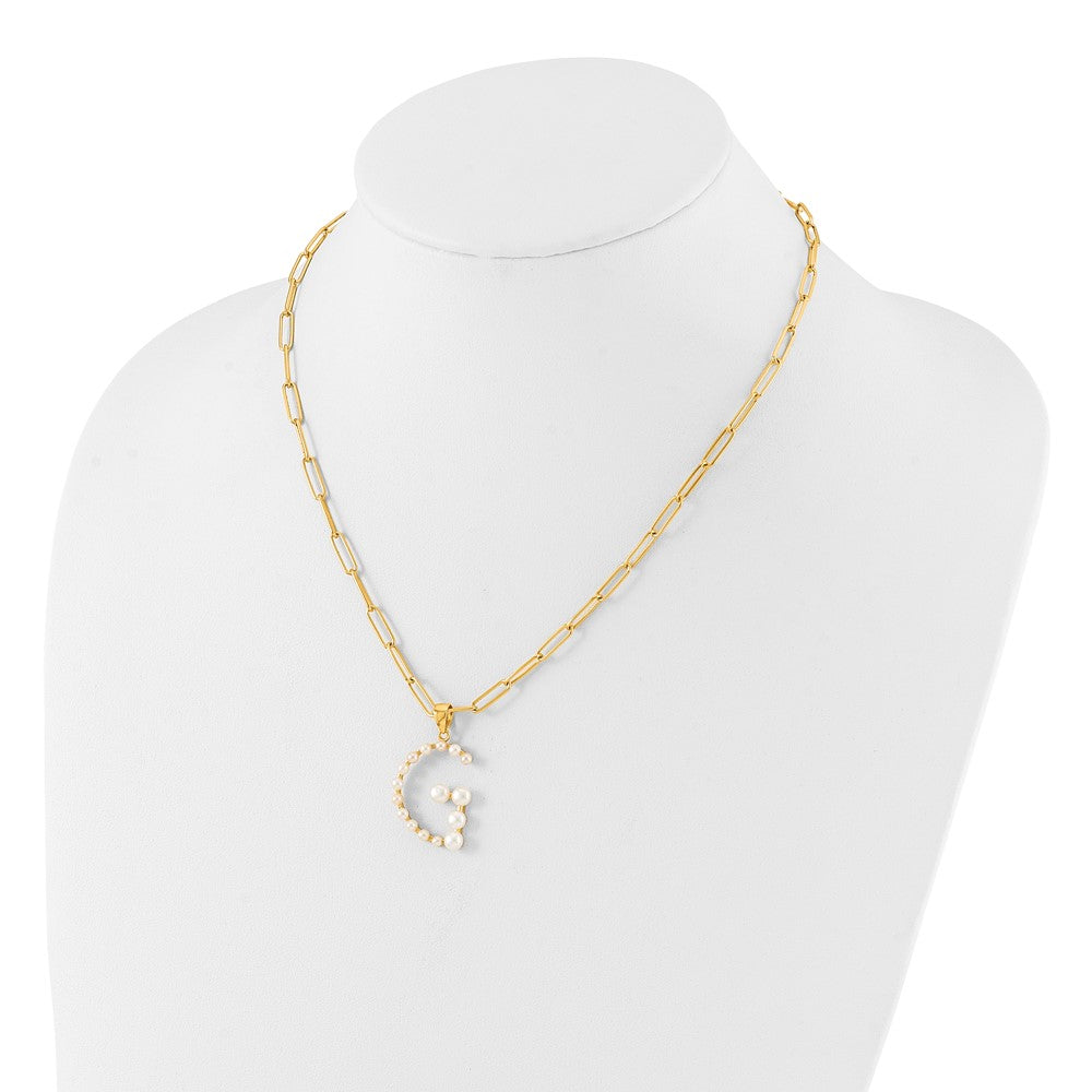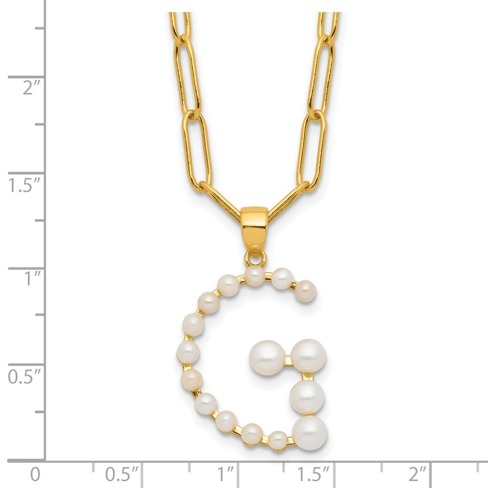 Sterling Silver Gold-plated 3- White Button Freshwater Cultured Pearl LETTER G Necklace