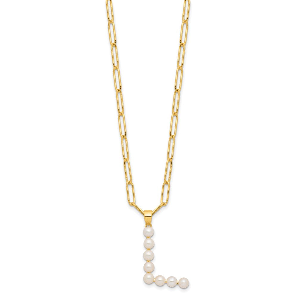 Sterling Silver Gold-plated 3- White Button Freshwater Cultured Pearl LETTER L Necklace