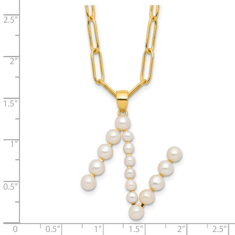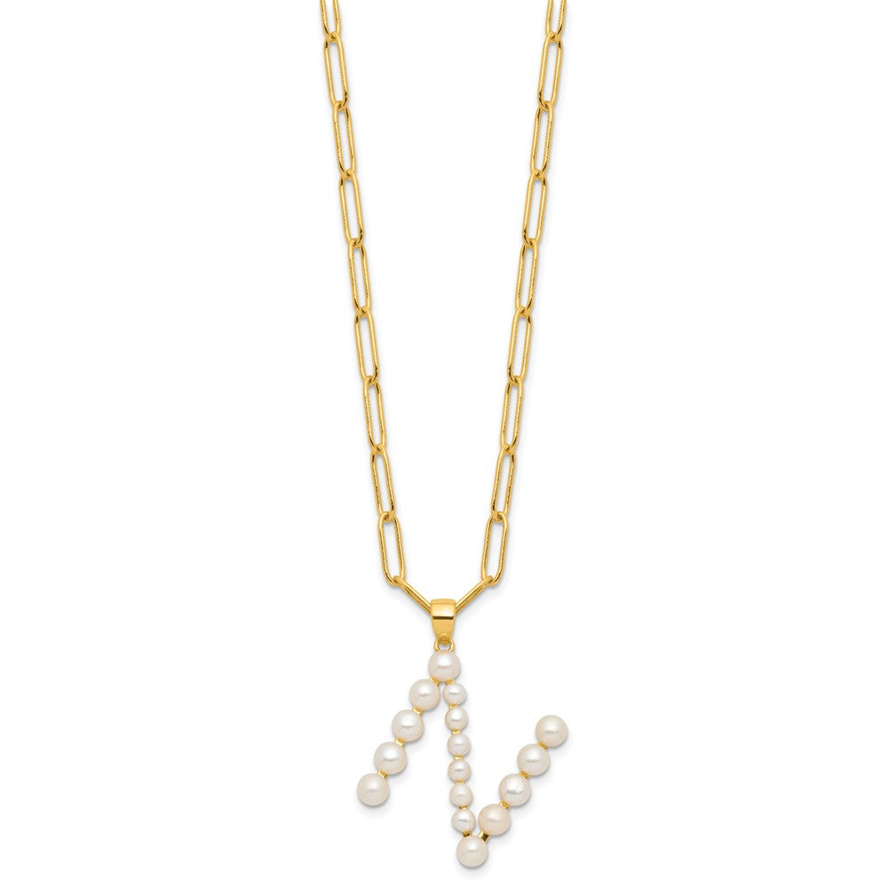 Sterling Silver Gold-plated 3- White Button Freshwater Cultured Pearl LETTER N Necklace