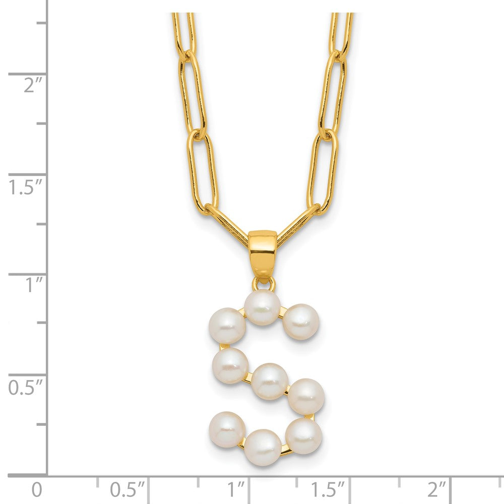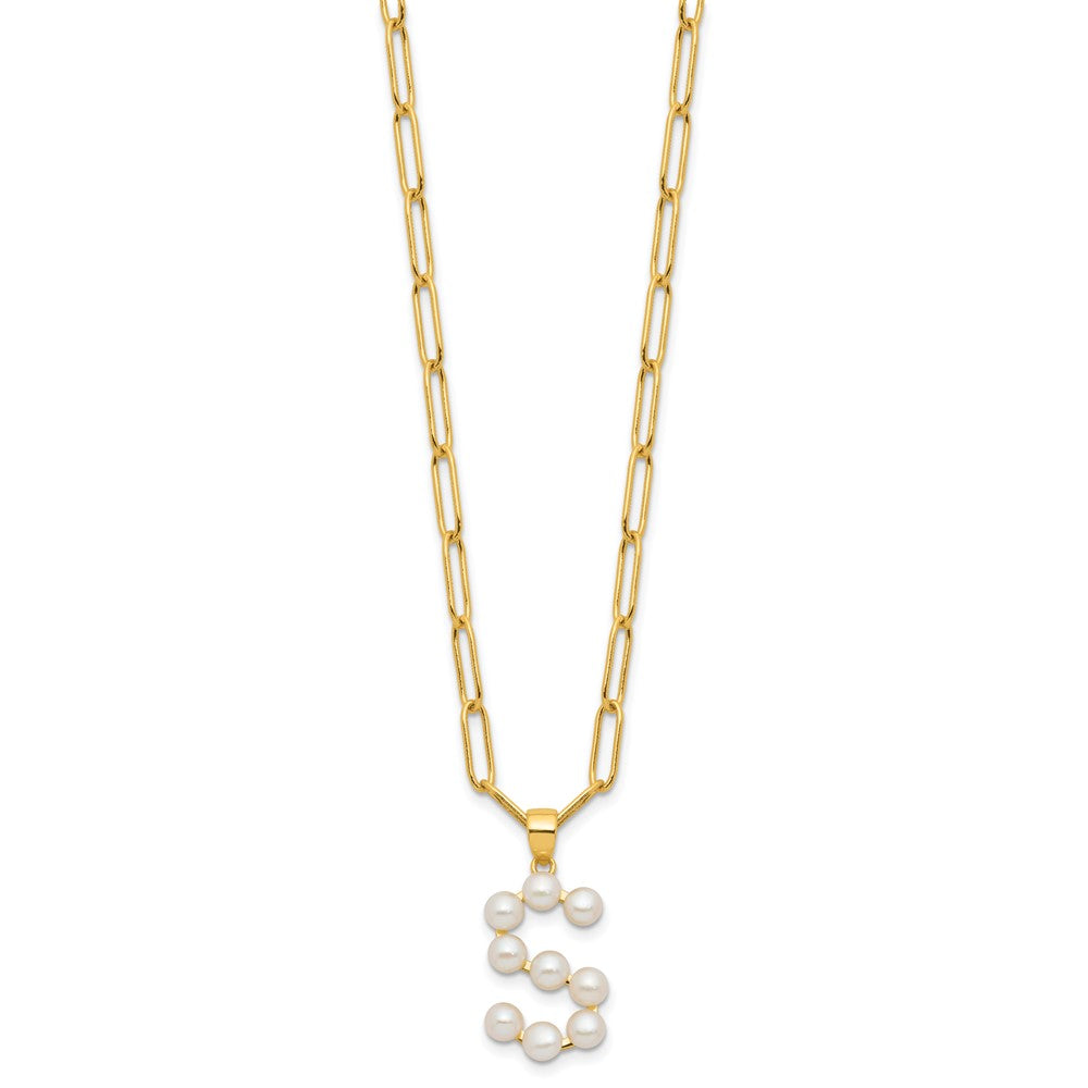 Sterling Silver Gold-plated 3- White Button Freshwater Cultured Pearl LETTER S Necklace