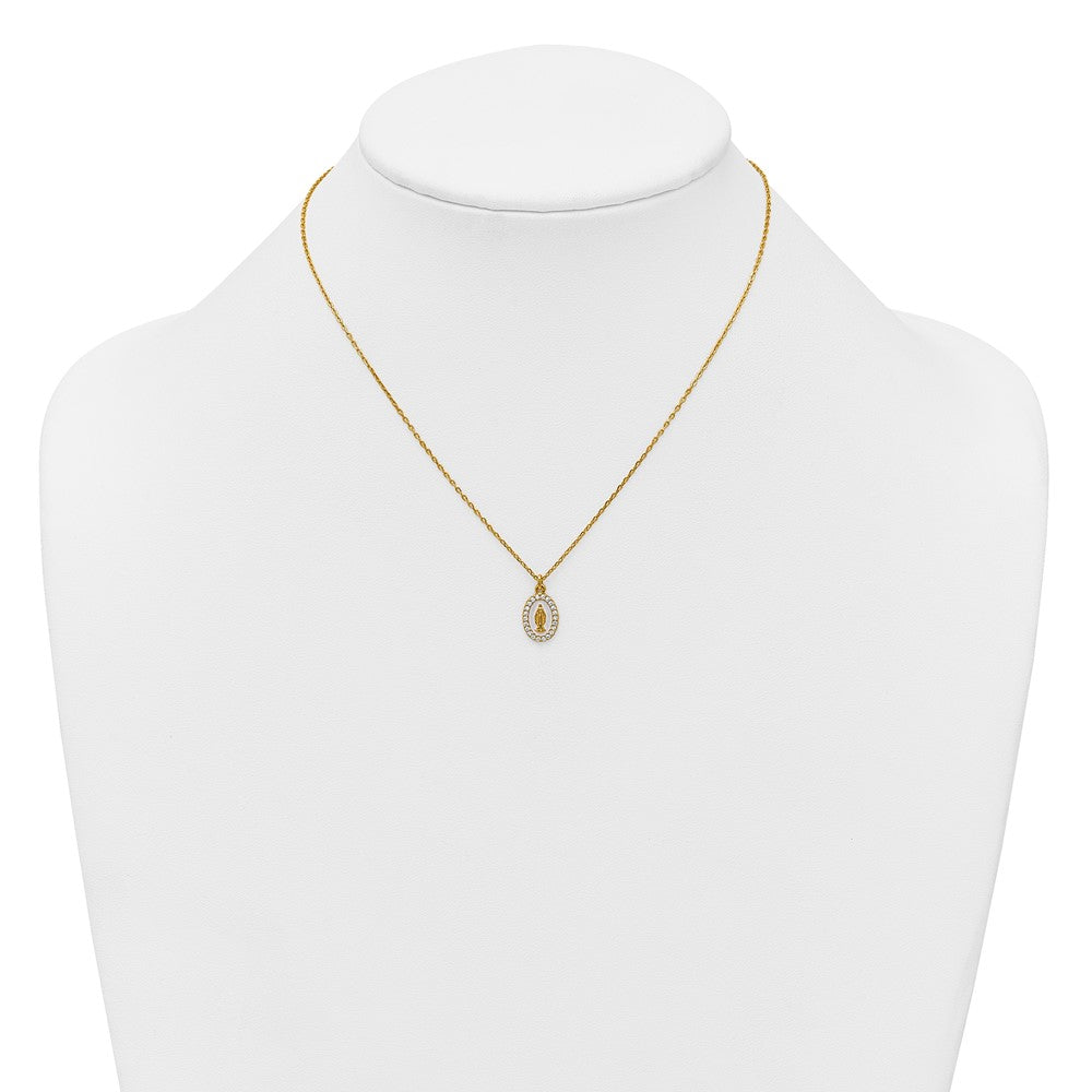Sterling Silver Gold-plated CZ and White Enamel Miraculous Medal 15. with extender Necklace