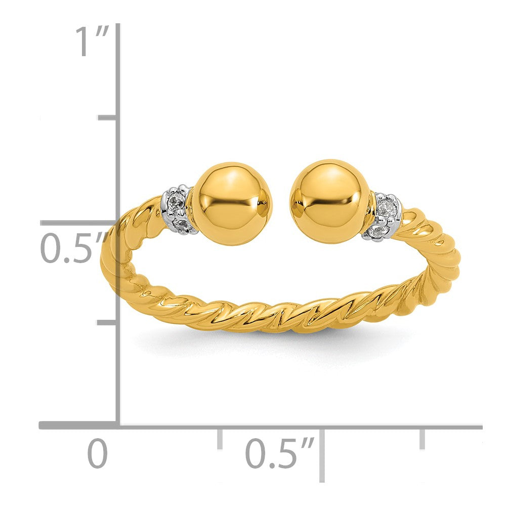 Sterling Silver Gold-plated Polished and Twisted CZ Ball End Size 8 Ring