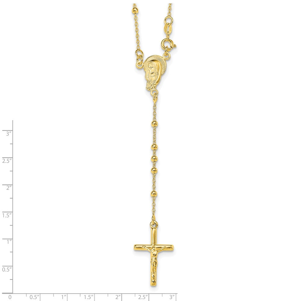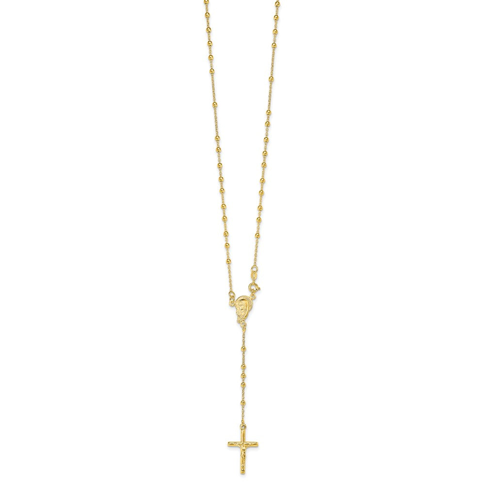 Sterling Silver Gold-plated Polished Bead Rosary Necklace