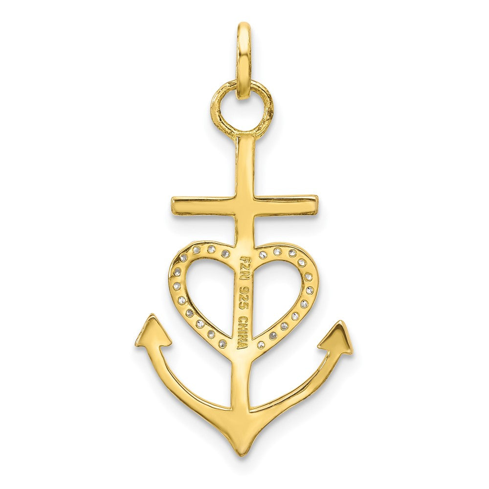 Sterling Silver Gold-tone Cross CZ Heart Anchor Pendant