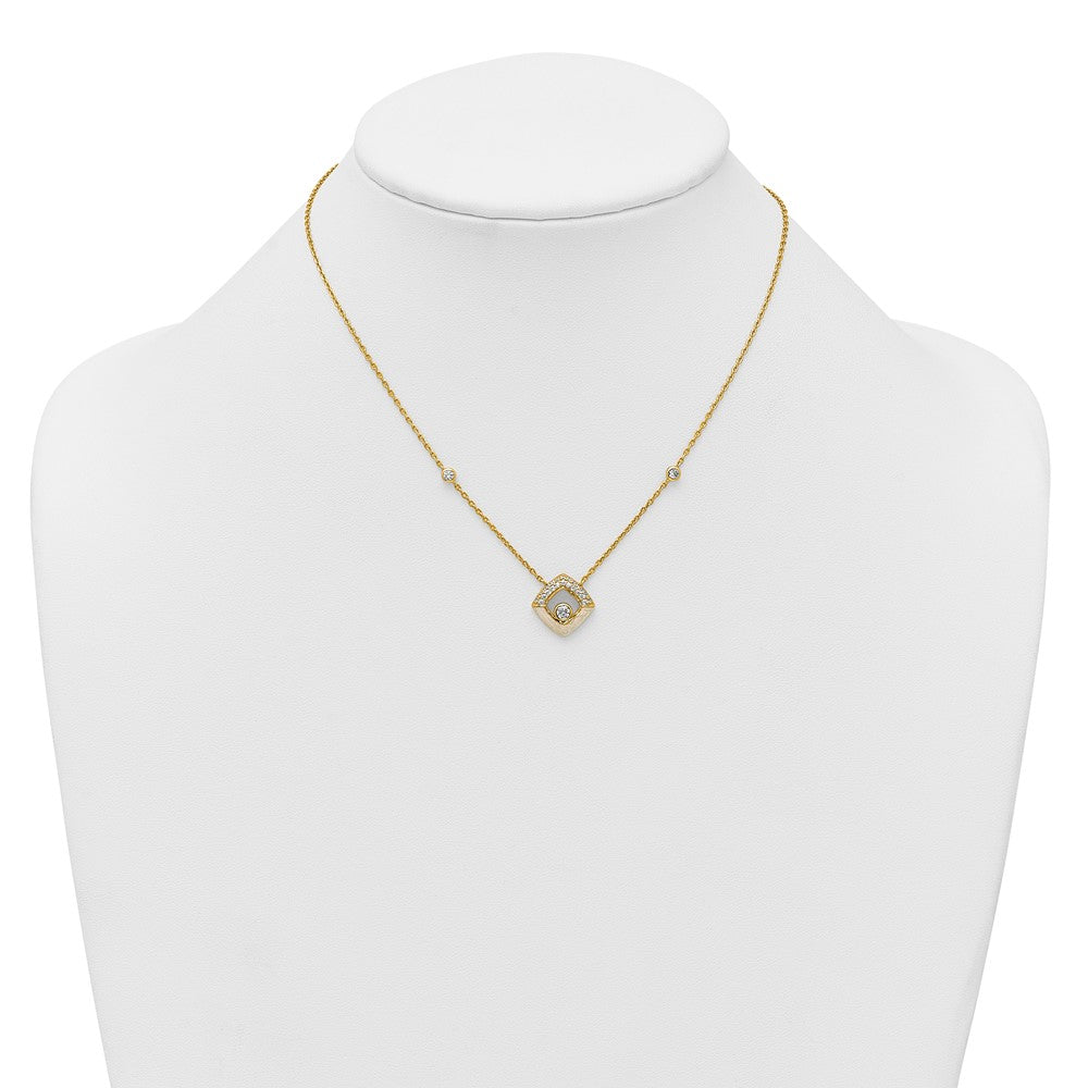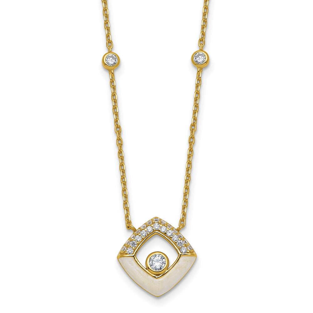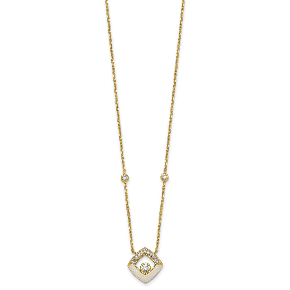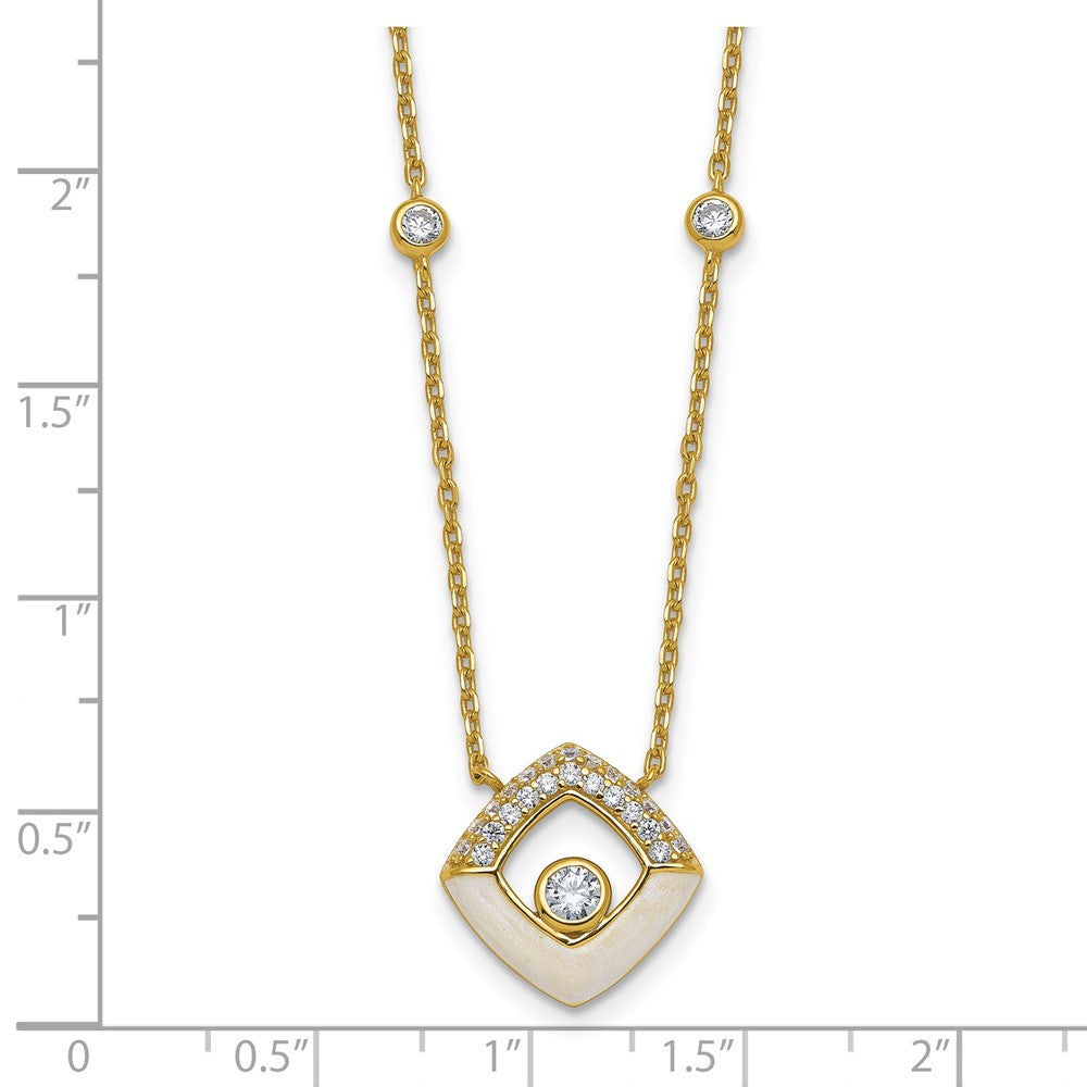 Sterling Silver Gold-tone CZ and Champagne Enamel Square with 1. Extension Necklace