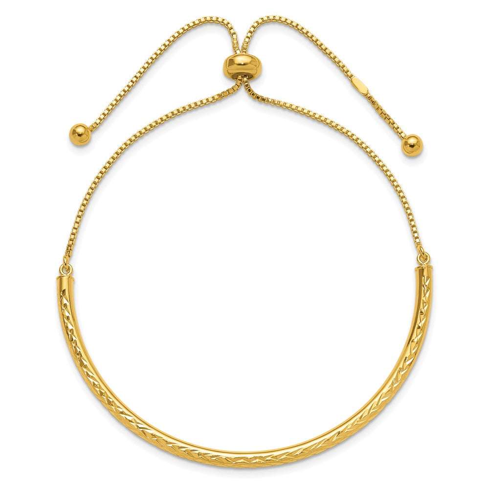 Sterling Silver Gold-tone Diamond-cut Bar Adjustable Bracelet