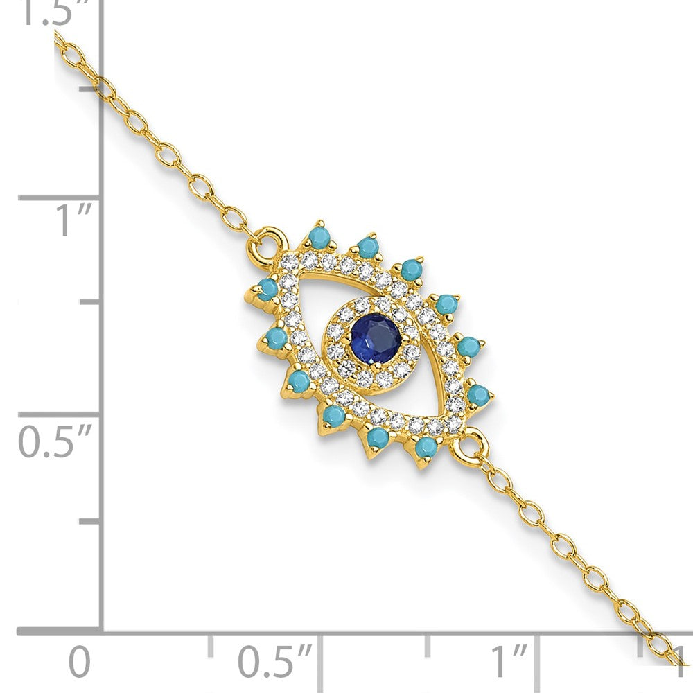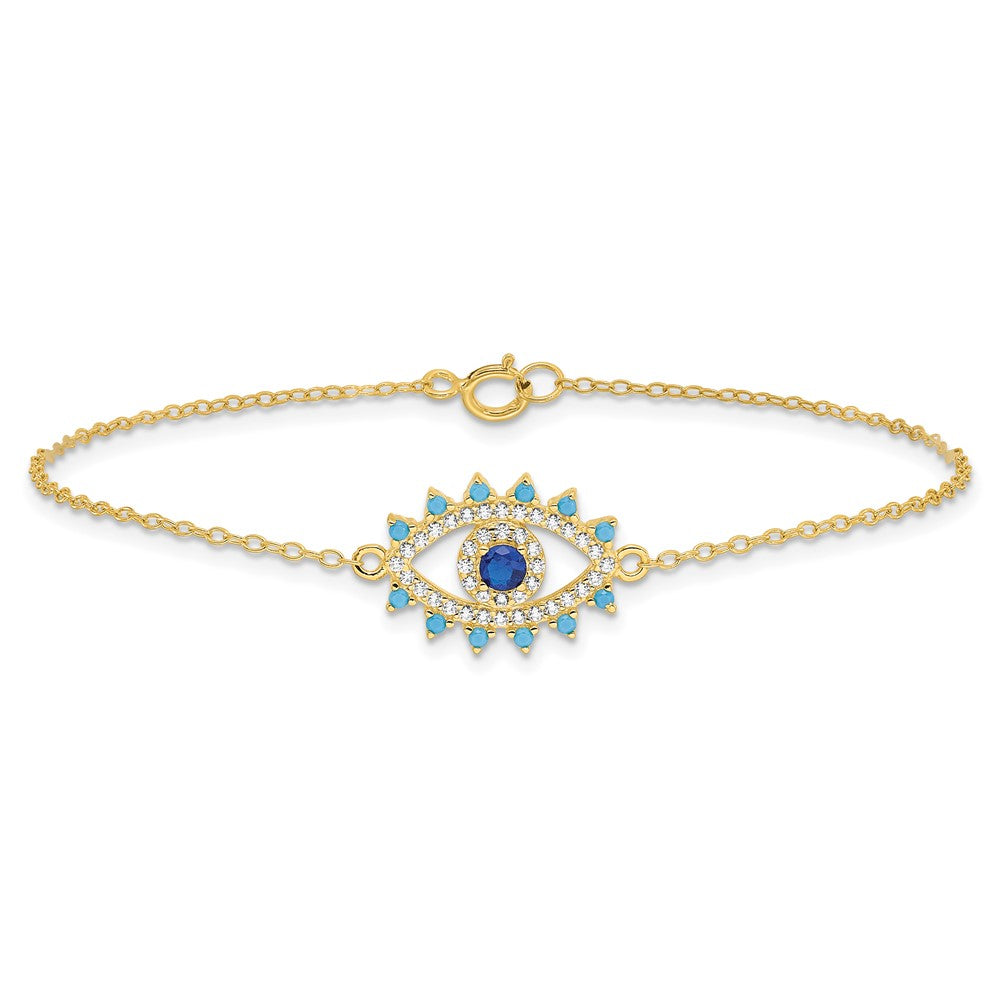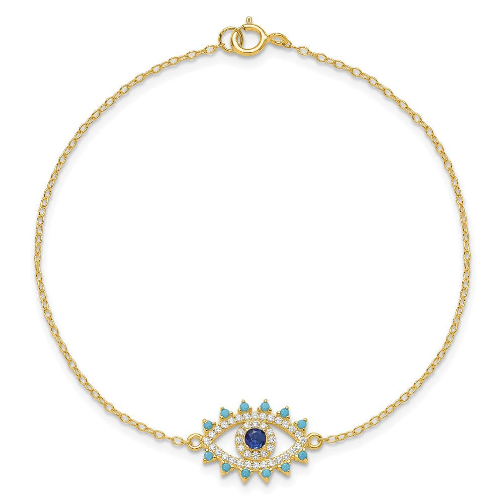 Sterling Silver Gold-tone Glass and Glass Crystal Evil Eye Bracelet