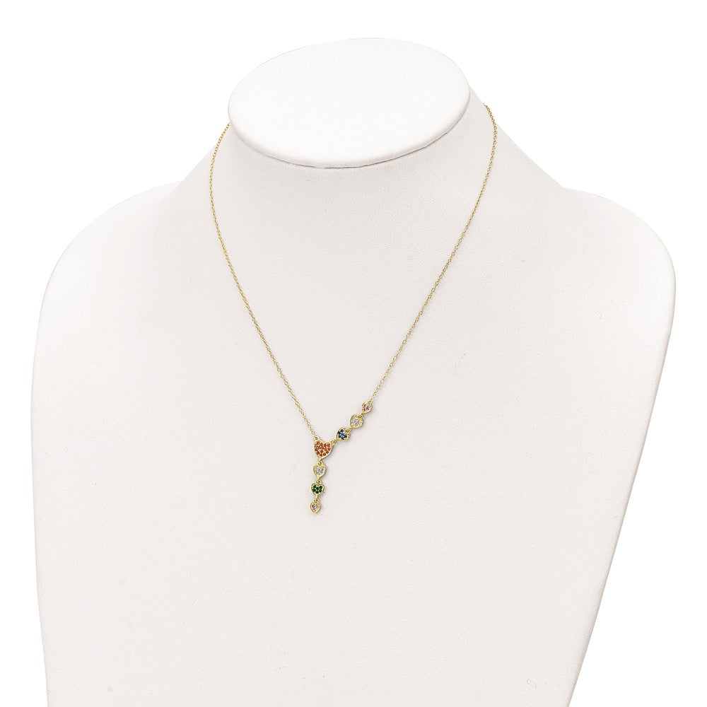 Sterling Silver Gold-tone Multicolor CZ Hearts 16. Necklace