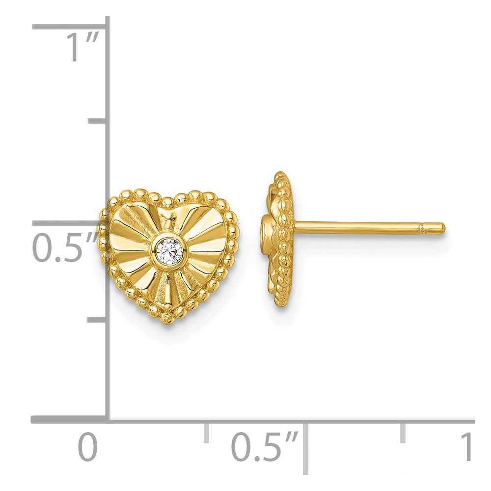 Sterling Silver Gold-tone Polished Beaded and Textured CZ Heart Post Earrings